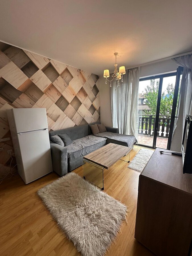 Апартаментът се състои от всекидневна с кухненски бокс, просторна тераса с прекрасна гледка към планината, спалня и баня с тоалетна. Продава се обзаведен и оборудван с качествени мебели и техника и е готов за живеене или отдаване под наем.