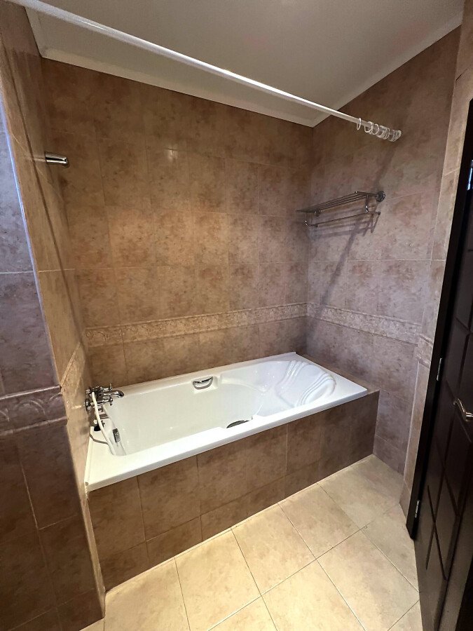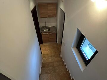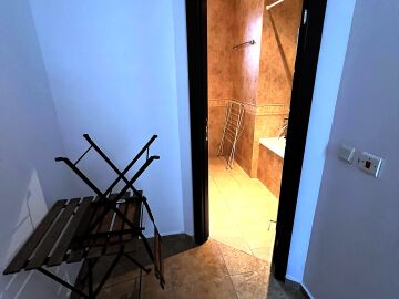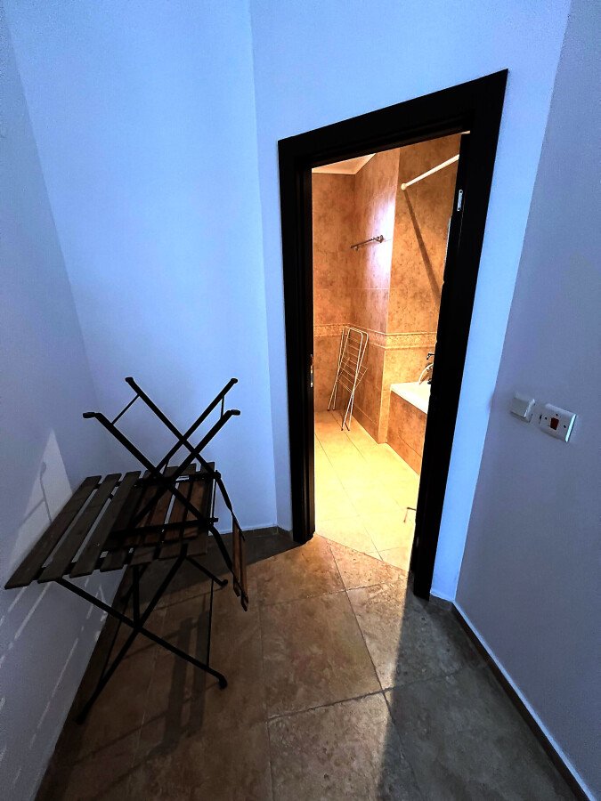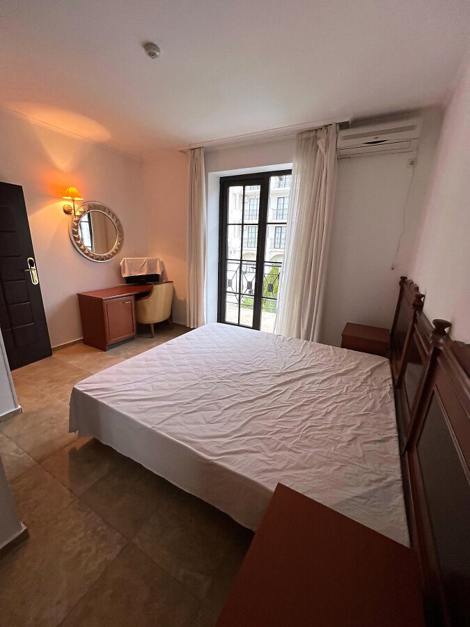 Апартаментът е много функционален, със следното разпределение – входно антре, всекидневна, баня с тоалетна и вана, балкон, вътрешно стълбище, спалня, втора баня с тоалетна и вана, тераса с гледка към морето и басейна.