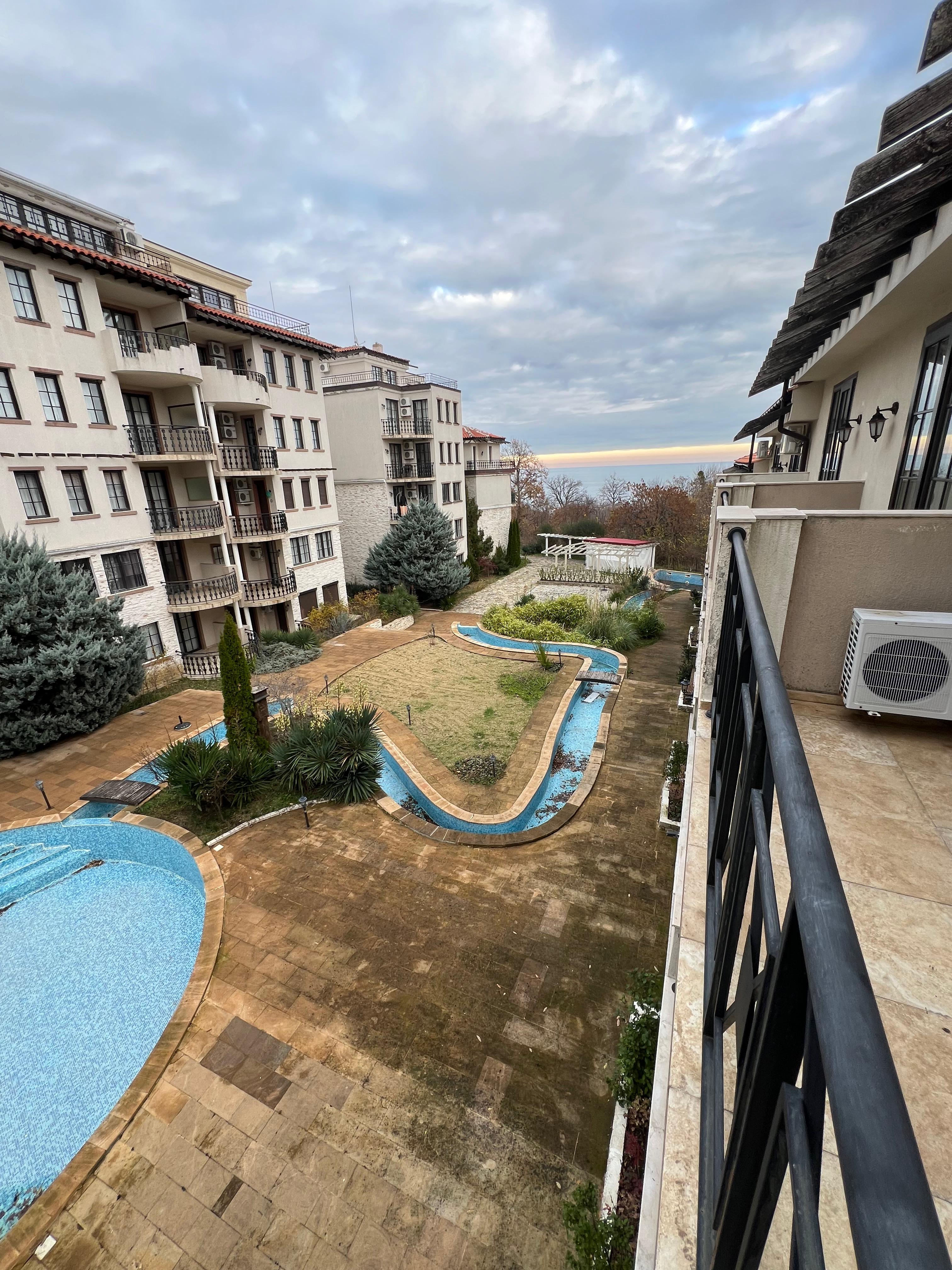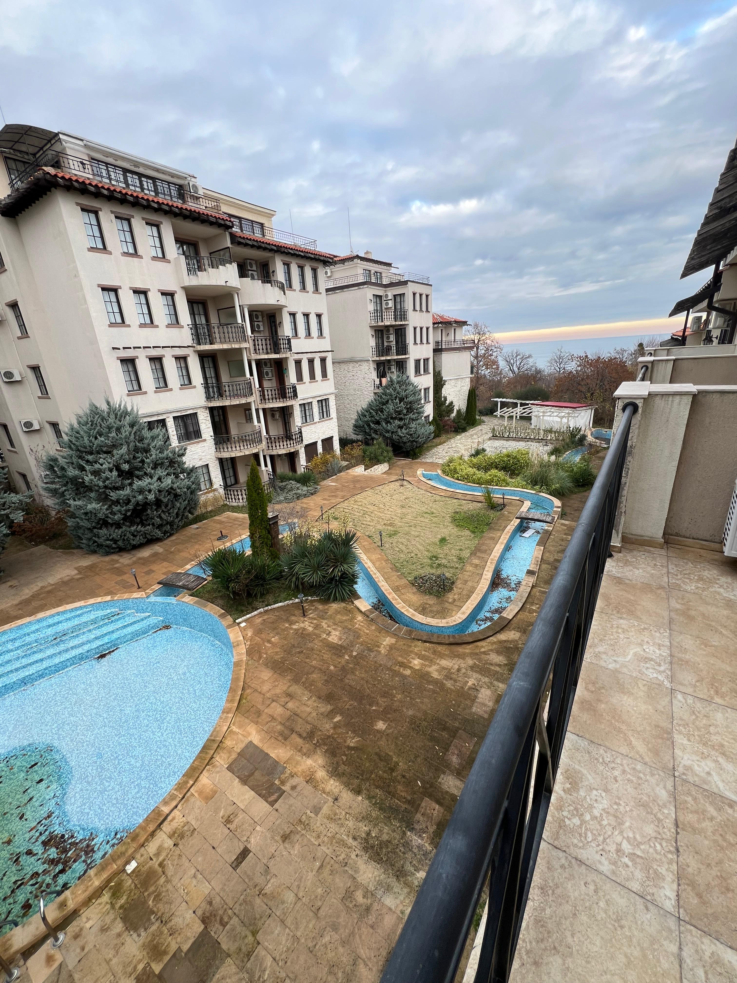 Предлагаме за продажба прекрасен двустаен апартамент с гледка към морето и към басейна, тип мезонет в комплекс „The Cliff Beach & Spa Resort”, разположен на първа линия в курортното морско градче Обзор, само на няколко метра от плажната ивица и морето.