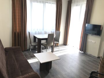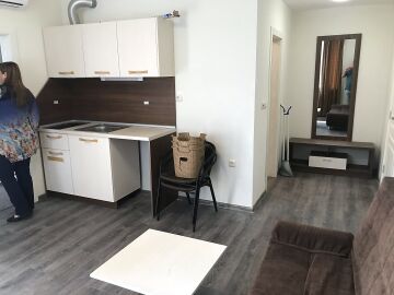 Апартаментът е с площ 55 кв.м. и е разположен на първия етаж. Състои се от дневна с кухненски бокс и кът за хранене, спалня, баня и тоалетна. Жилището се продава с наличното обзавеждане и оборудване.