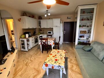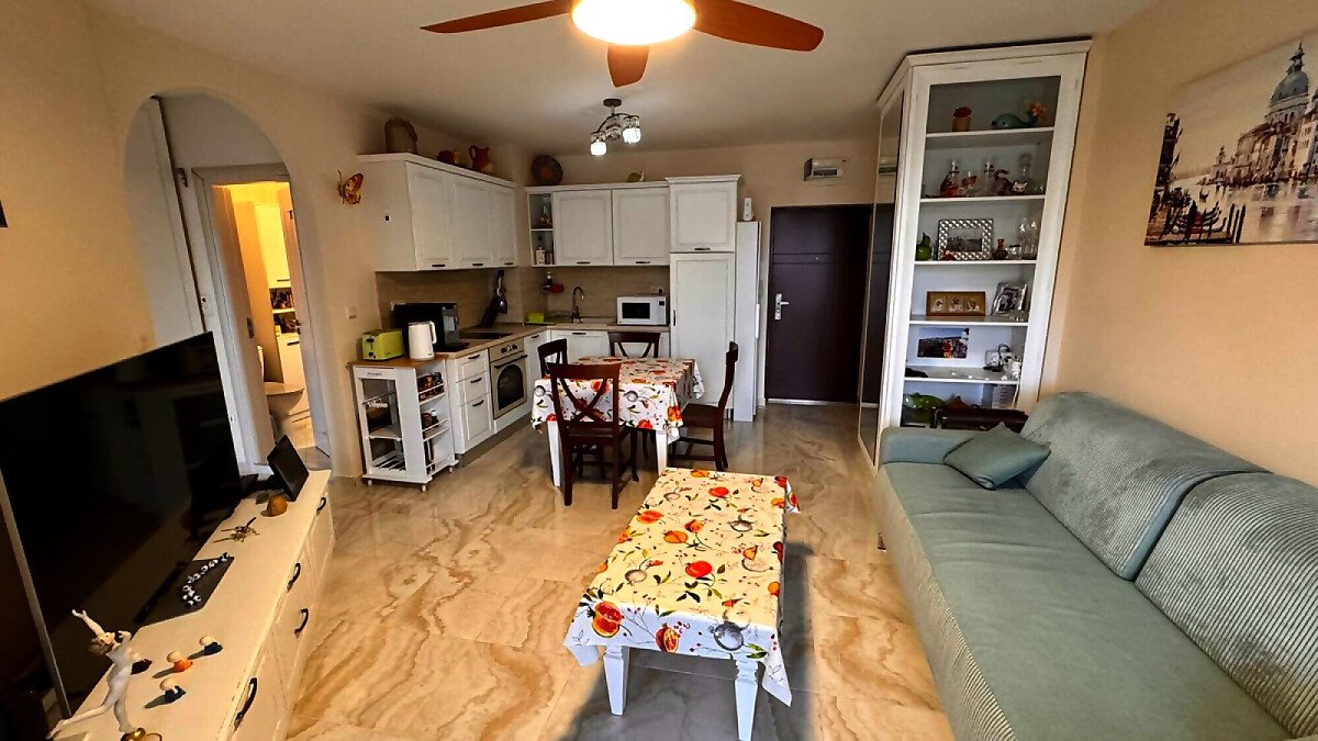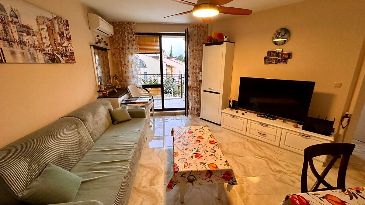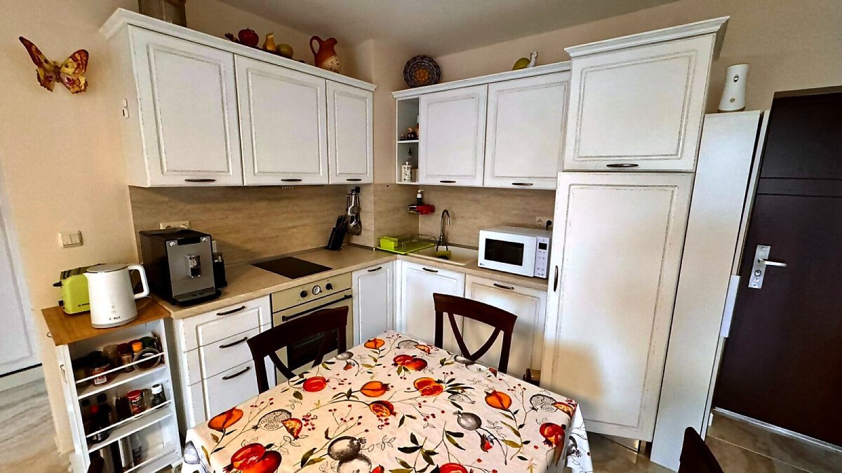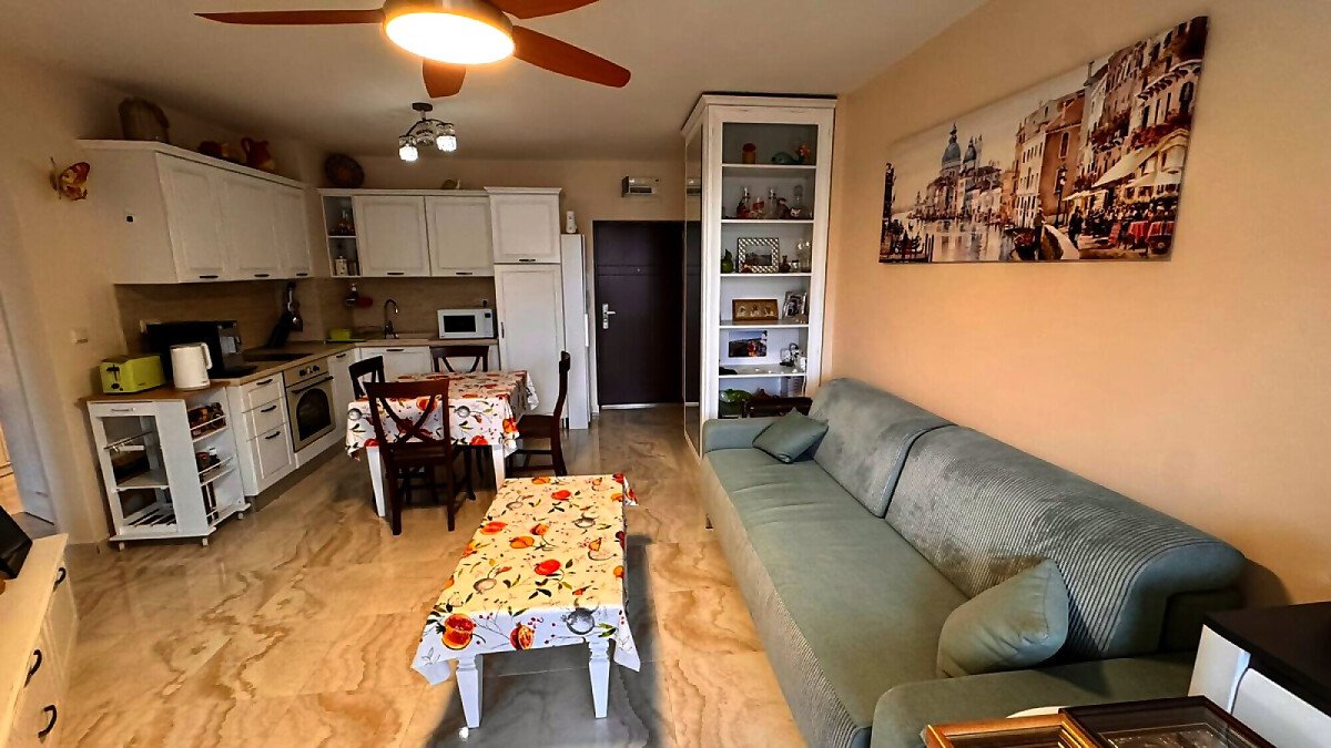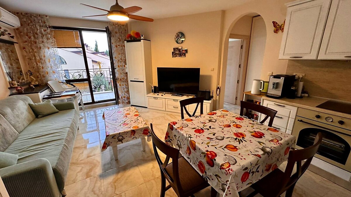 Апартаментът се продава с качествено обзавеждане и оборудване, готов за живеене, със следното разпределение – входно антре, всекидневна с кухненски бокс и кът за хранене, баня с тоалетна и душ кабина, уютна и слънчева спалня, балкон с изглед към вътрешната територия на комплекса.