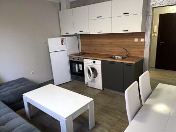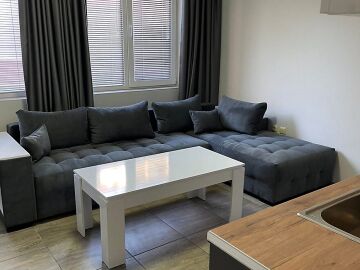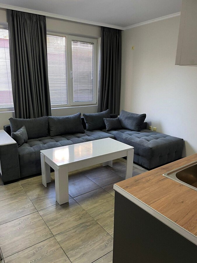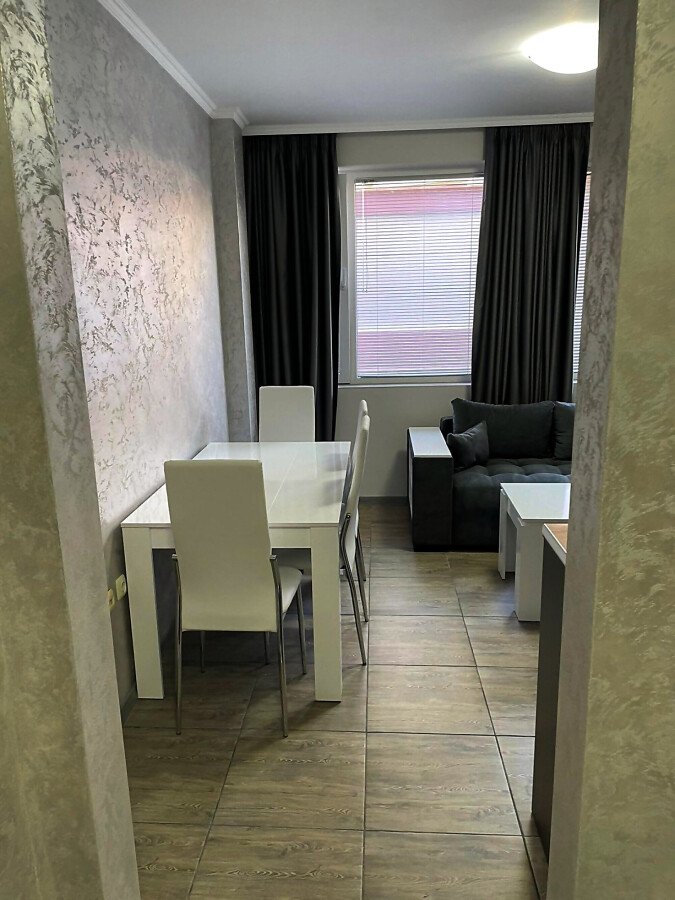 Апартаментът е разположен на партерен етаж, с площ 58 кв.м., напълно обзаведен и оборудван с нови мебели и техника, със следното разпределение – входно антре, всекидневна с кът за хранене и кухненски бокс, просторна спалня, баня с тоалетна. Жилището няма балкон!