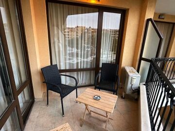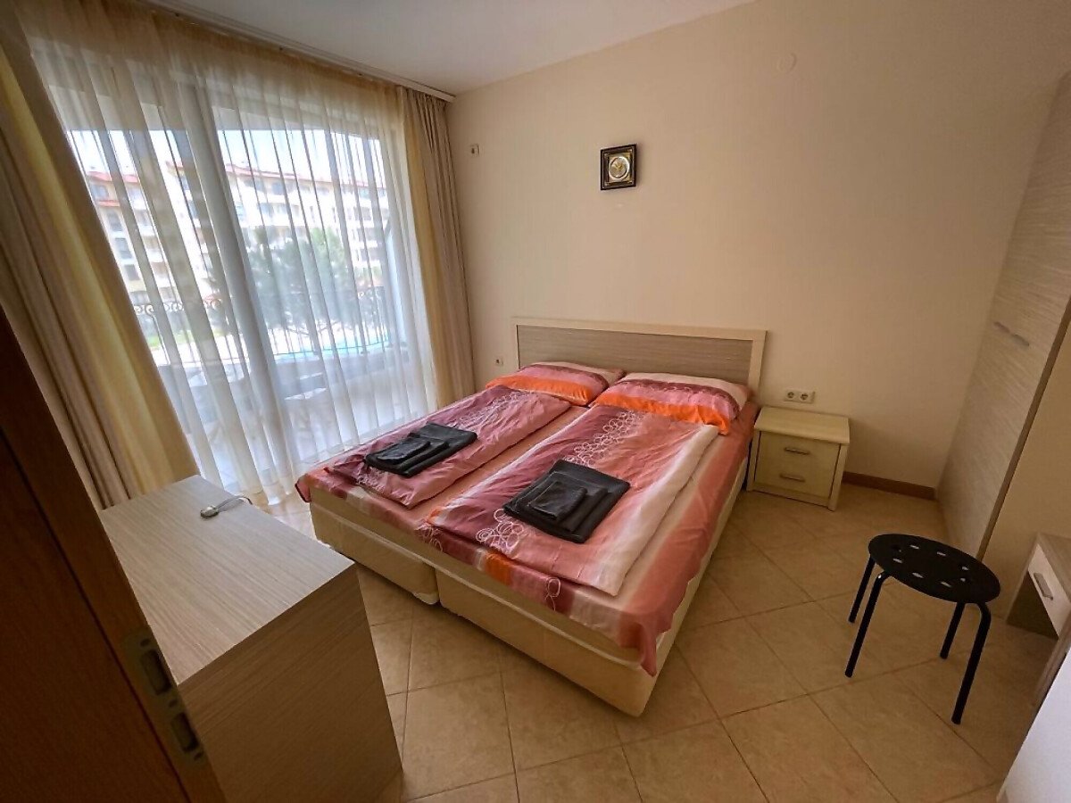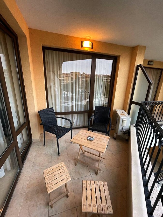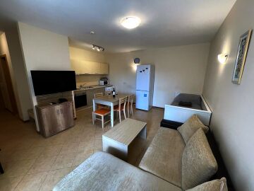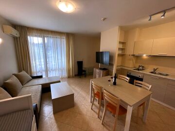 Апартаментът се продава с всичко необходимо за комфортен престой, напълно оборудван и обзаведен. Жилището е разположено на трети етаж и има следното разпределение – входно антре, слънчева всекидневна с кухненски бокс и кът за хранене, уютна спалня, баня с тоалетна и душ кабина, тераса с красив изглед към басейна и поддържаната територия на комплекса.