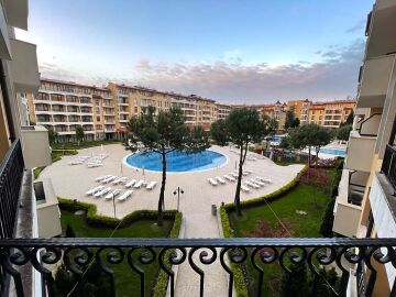 Предлагаме за продажба слънчев двустаен апартамент с гледка към басейна и вътрешната територия на чудесния комплекс „Роял Сън“, разположен в популярния морски курорт Слънчев бряг, в район с развита инфраструктура и удобни комуникационни връзки, на 500 метра разстояние от плажната ивица.