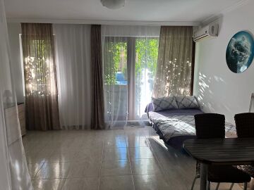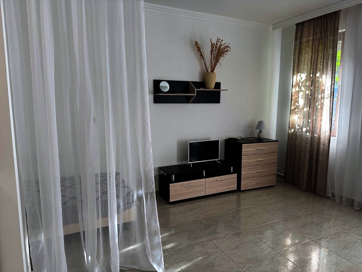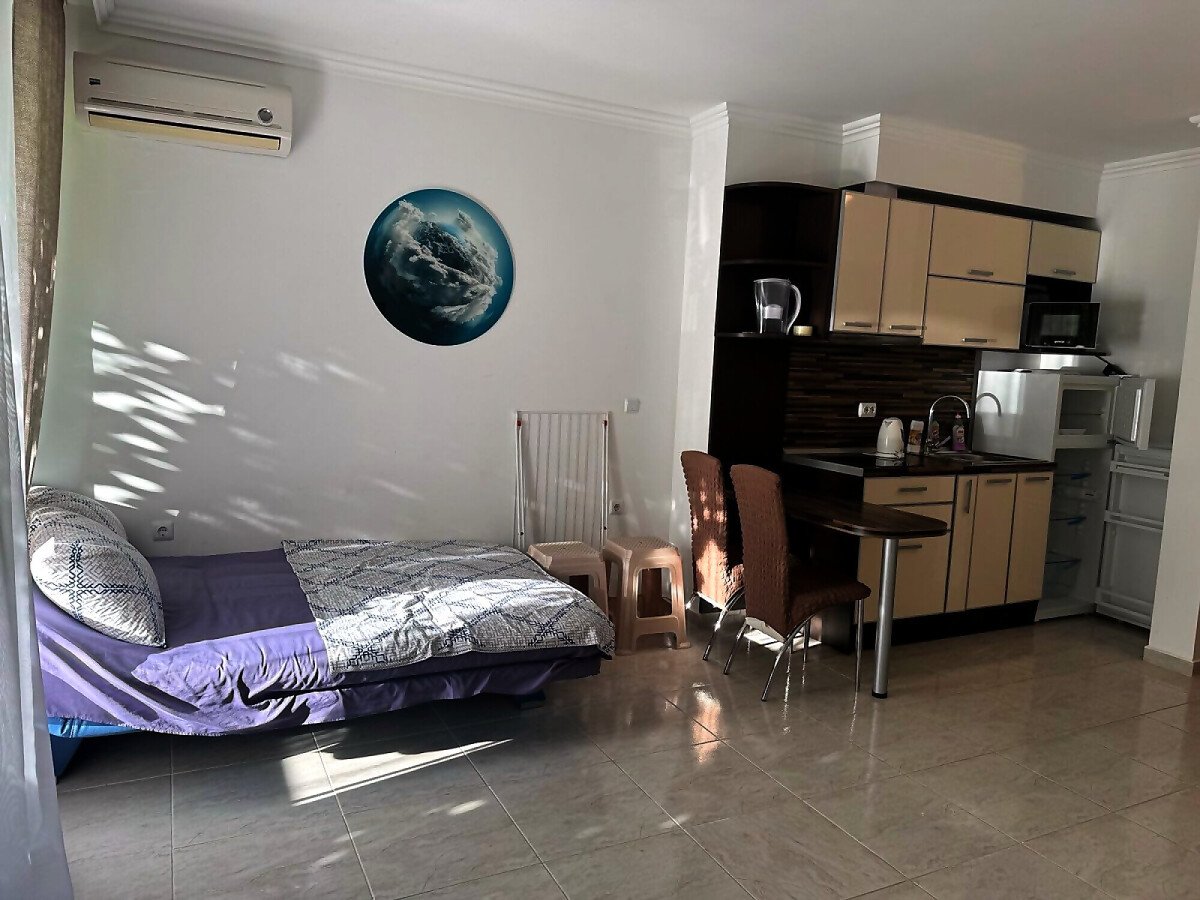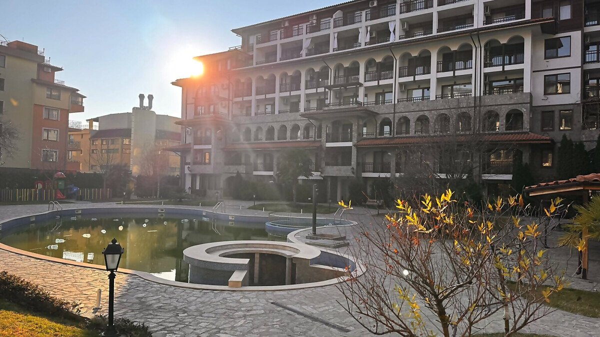 Предлагаме за продажба просторно студио с гледка към басейна в комплекс „Олимп“, разположен на спокойно, но комуникативно място в елитния курорт Свети Влас, само на 200 метра разстояние от морския бряг.