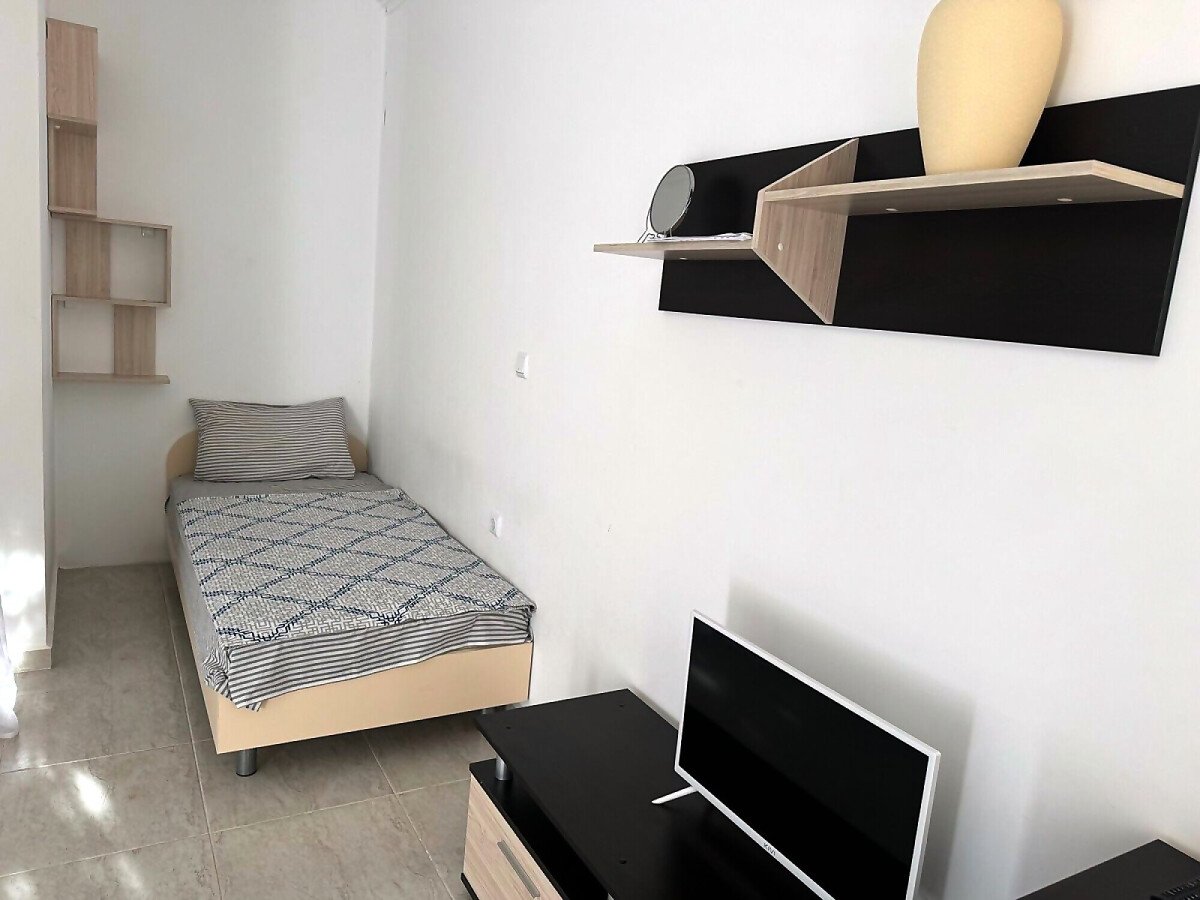 Студиото е разположено на партерен етаж, обзаведено и оборудвано, със следното разпределение – входно антре, кухненски бокс с малък кът за хранене, две легла, баня с тоалетна и душ кабина, балкон с изход към басейна и вътрешната част на комплекса.