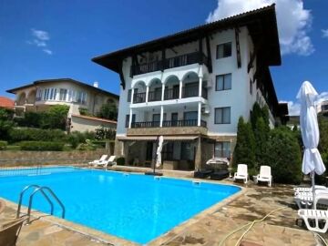 На разположение на гостите и собствениците има открит плувен басейн за възрастни с детска секция, зони за релакс и слънчеви бани с шезлонги, озеленена територия, голям и удобен паркинг.