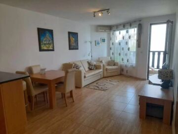 Апартаментът се продава с необходимото обзавеждане и оборудване, готов за комфортен престой или целогодишно живеене, със следното разпределение – входно антре, просторна и слънчева всекидневна с кухненски бокс и зона за хранене, спалня, баня с тоалетна и душ кабина, тераса с частична гледка към морето и планината.
