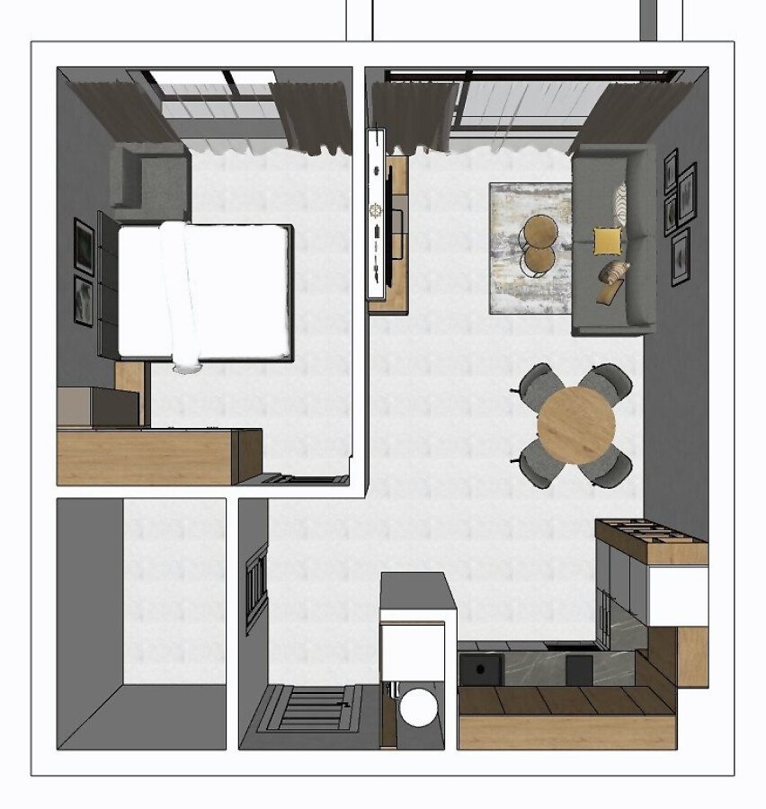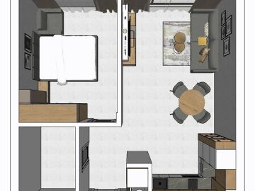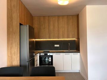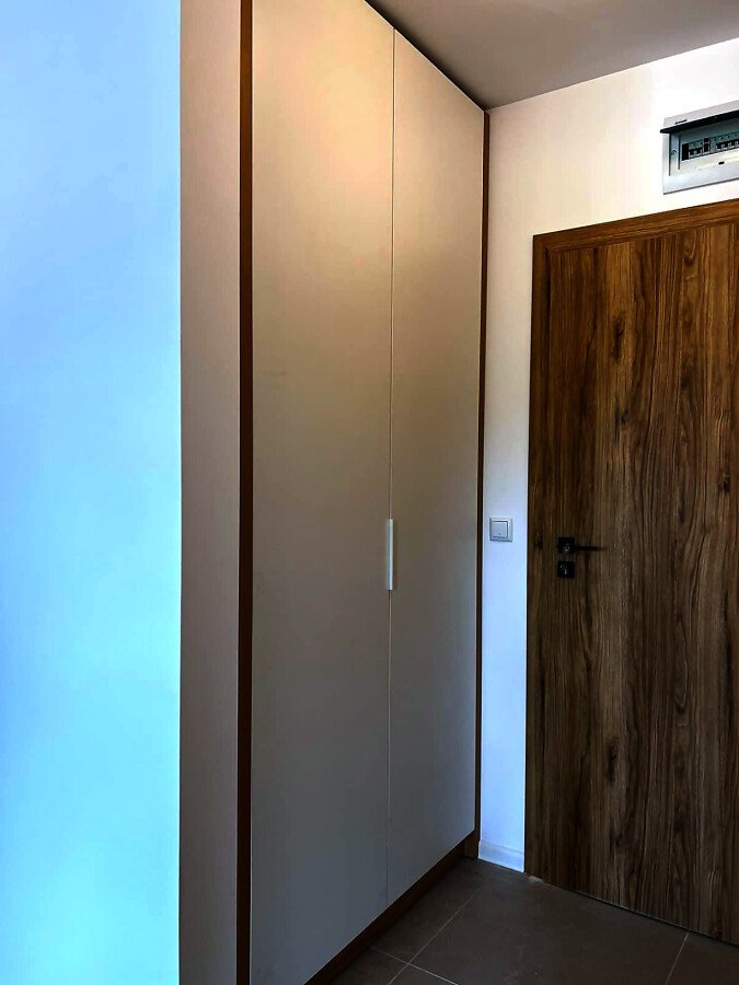 Апартаментът е с ново обзавеждане и оборудване, напълно готов за живеене или комфортен престой, със следното разпределение – входно антре, светла всекидневна с кухненски бокс и кът за хранене, спалня, баня с тоалетна и душ кабина, тераса.