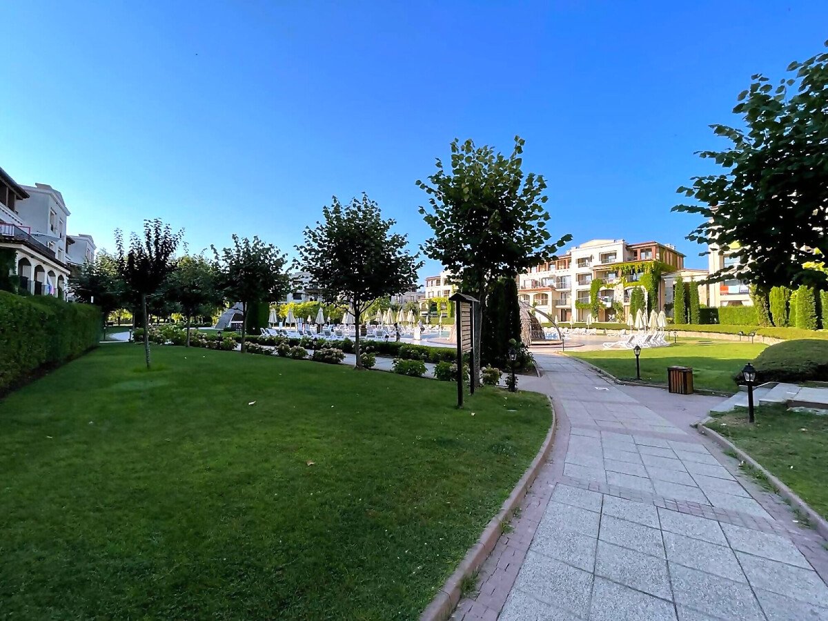 Комплексът е от затворен тип и представлява няколко групи сгради, които са обособени самостоятелно, но същевременно са свързани с останалите чрез красиви алеи, с пленително озеленени градини. Във всяка една от сградите има отделни апартаменти - студиа, едноспални или двуспални.