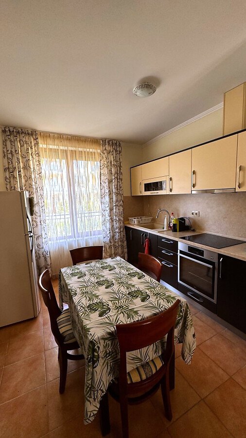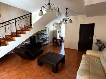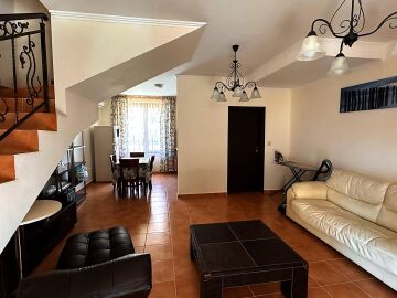 Къщата е напълно обзаведена и готова за нанасяне или отдаване под наем. Комплексът разполага с озеленени общи части, басейни, охрана и контролиран достъп.