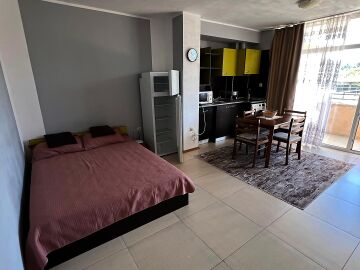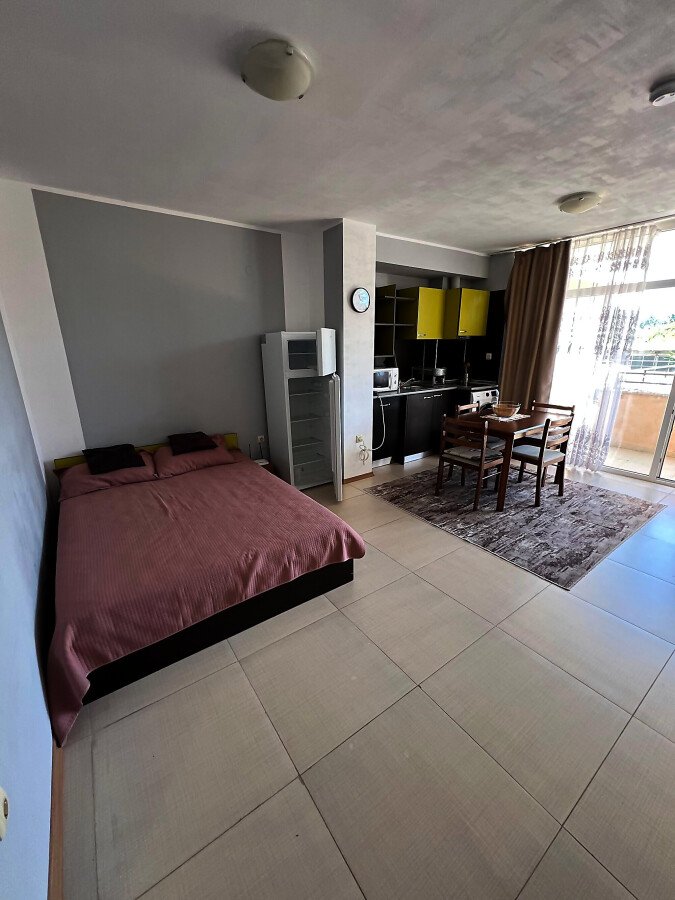 Студиото е в отлично състояние, обзаведено и оборудвано с всичко необходимо. Разпределението е следното: антре, просторна всекидневна с кухненски бокс и кът за хранене, зона за сън с голямо легло, балкон , баня с тоалетна.