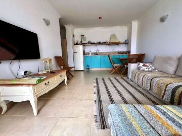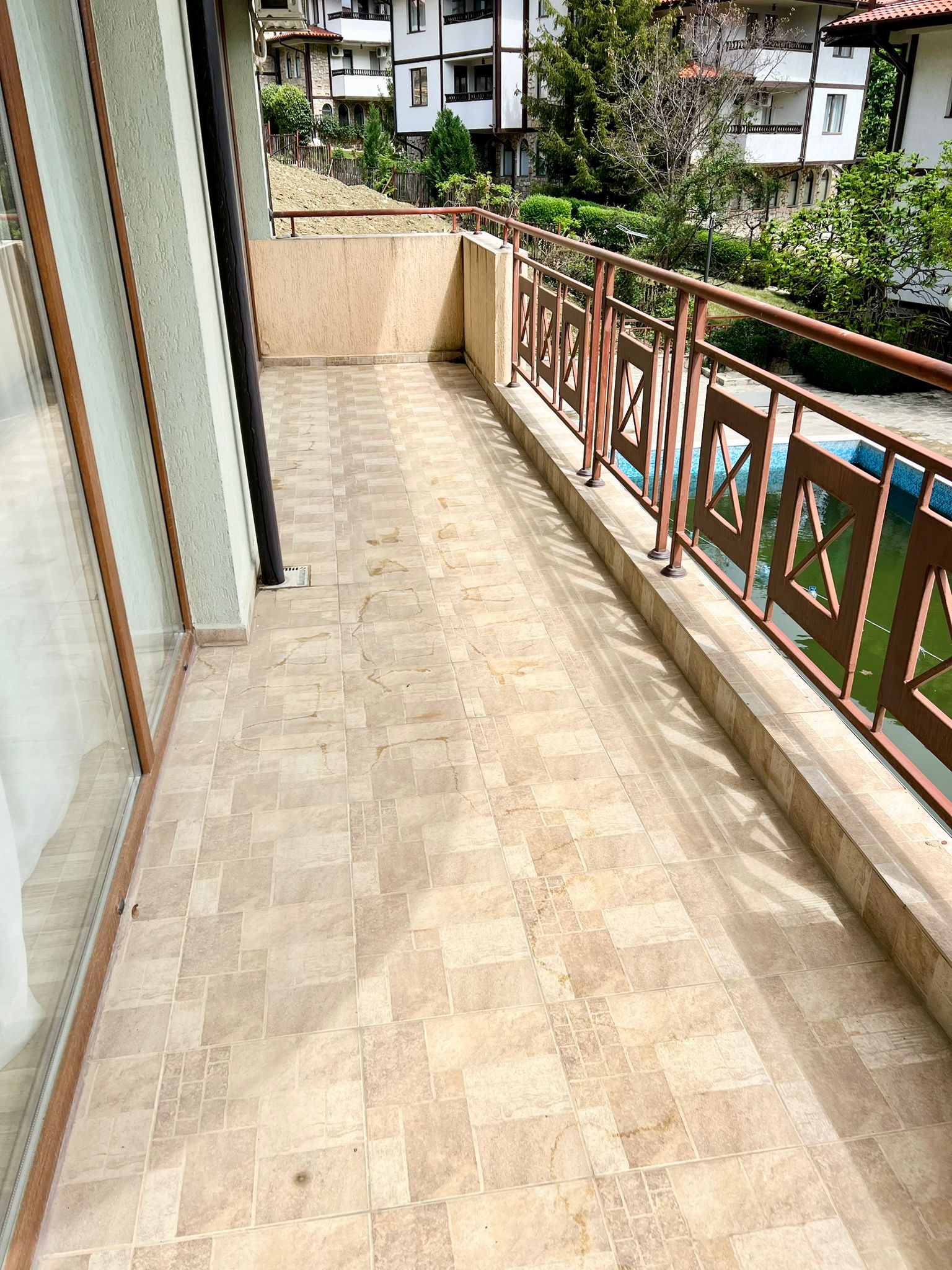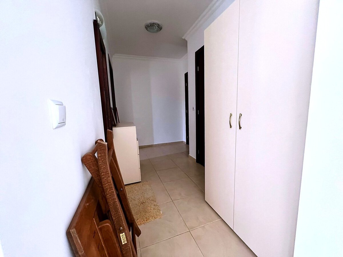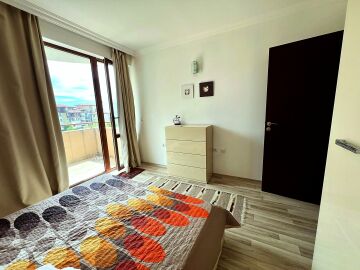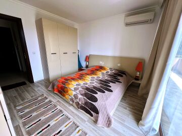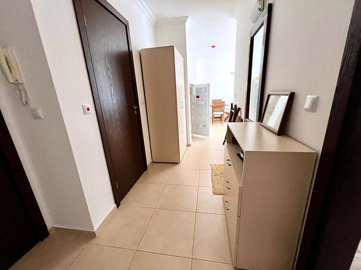 Апартаментът е с площ от 60 кв.м. и се състои от входно антре, светла и просторна всекидневна с кухненски бокс и зона за хранене, уютна спалня, баня с тоалетна и душ кабина, голяма тераса с невероятна гледка към морето и басейна. Имотът е напълно обзаведен и оборудван с всичко необходимо за комфортно живеене или отдаване под наем.
