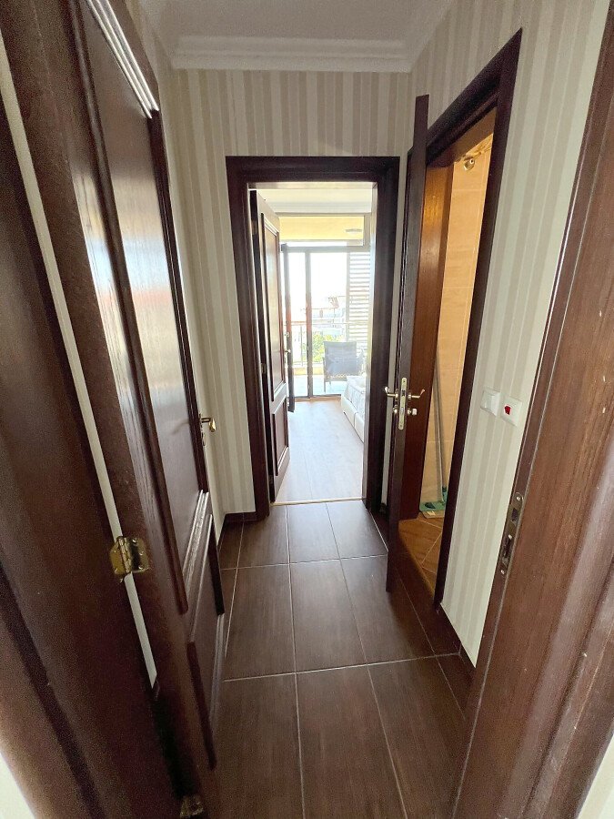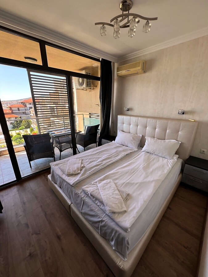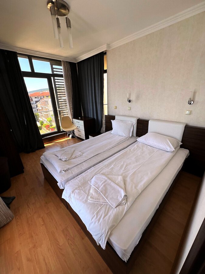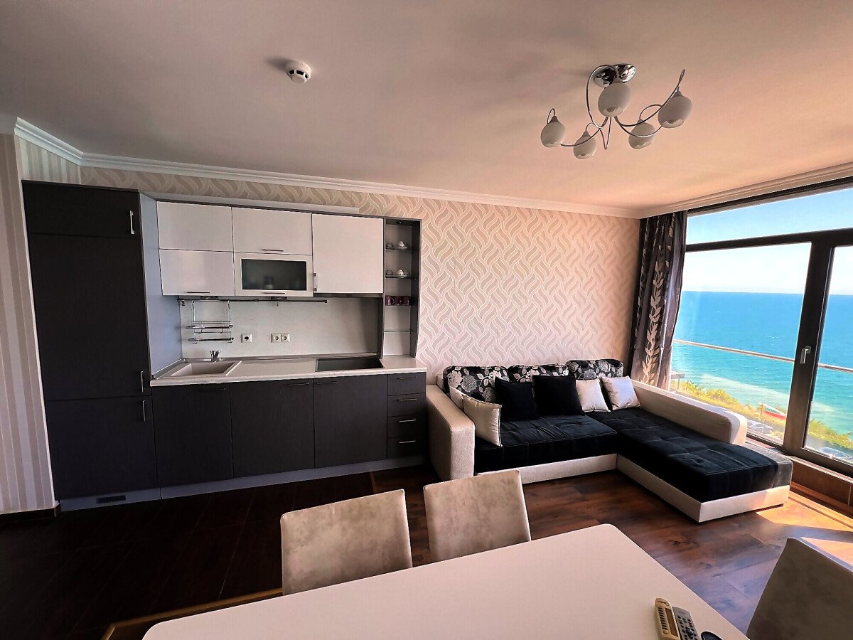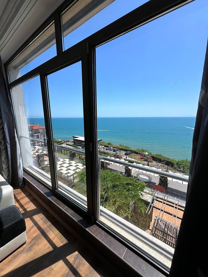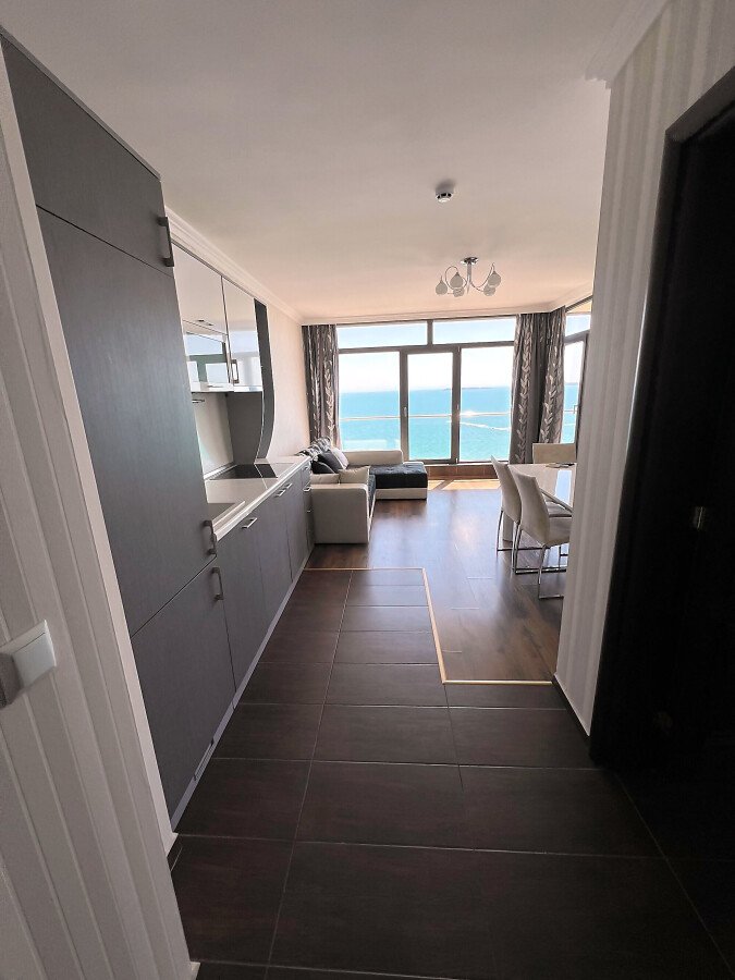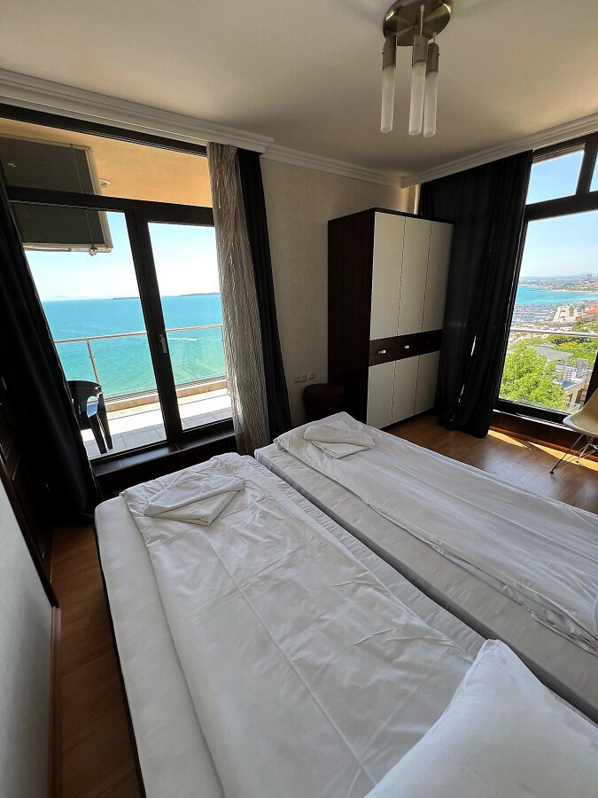Апартаментът се продава в отлично състояние, готов за нанасяне, със следното разпределение – входно антре, просторна всекидневна със зона за хранене и кухня, две спални, тоалетна, малък коридор, баня с тоалетна и душ кабина, две тераси с уникална панорамна гледка към морето.