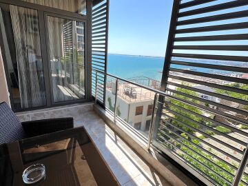 Предлагаме за продажба уникален тристаен апартамент с панорамна гледка към морето в прекрасния комплекс „Долче Вита 2“, разположен на първа линия на територията на елитния курорт Свети Влас.