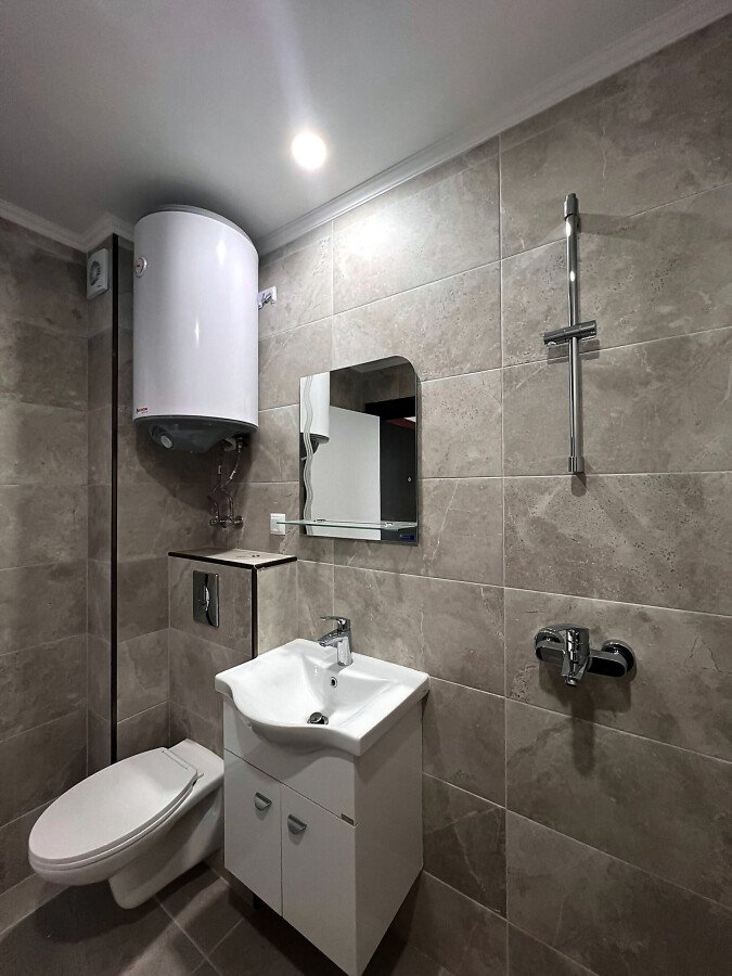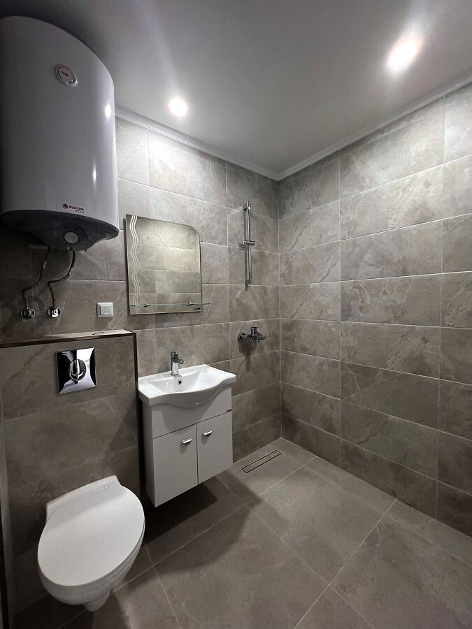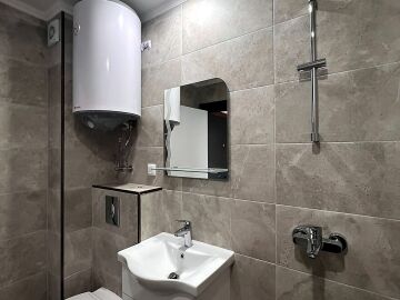 Банята е напълно завършена, а в едната стая има монтиран климатик.