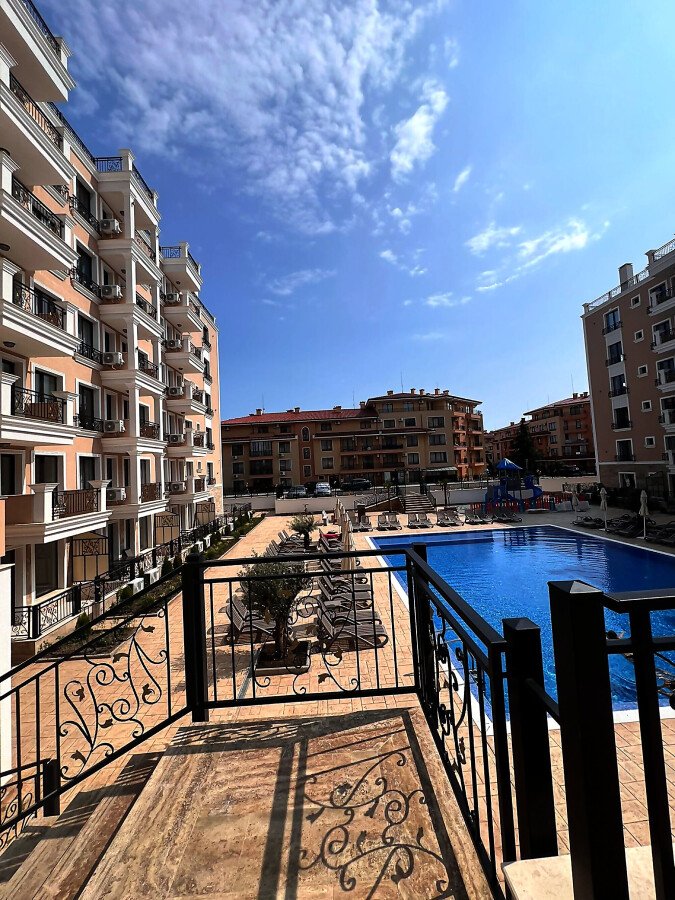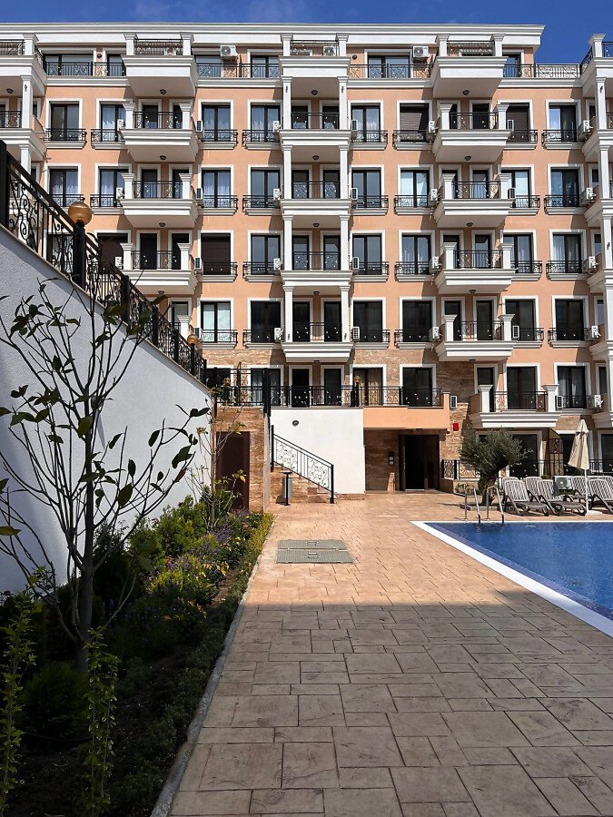 Предлагаме за продажба двустаен апартамент в прекрасния комплекс „Емпериум“, разположен в комуникативен район на курорта Свети Влас, само на 200 метра от морето и пясъчната плажна ивица.