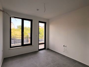 Апартаментът има следното разпределение – входно антре, всекидневна, спалня, тераса с гледка към вътрешната част, баня с тоалетна.