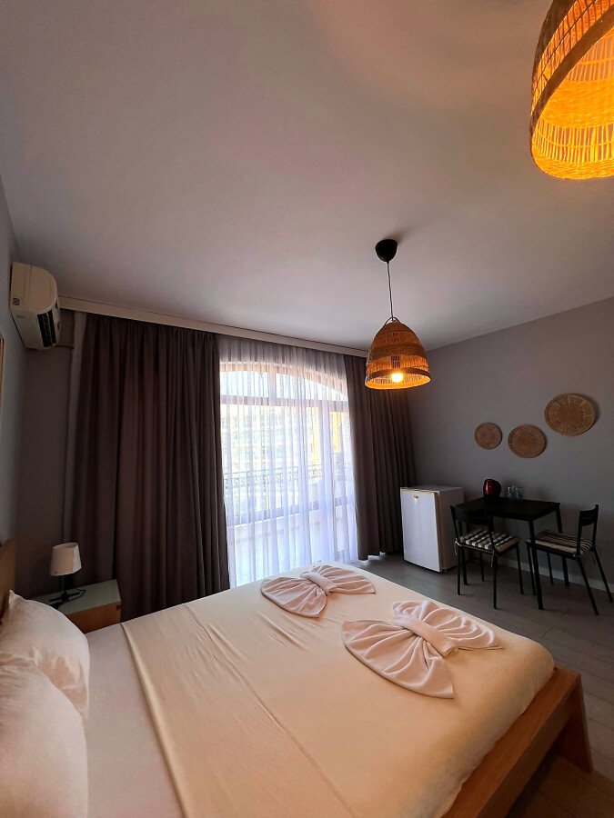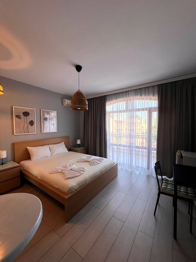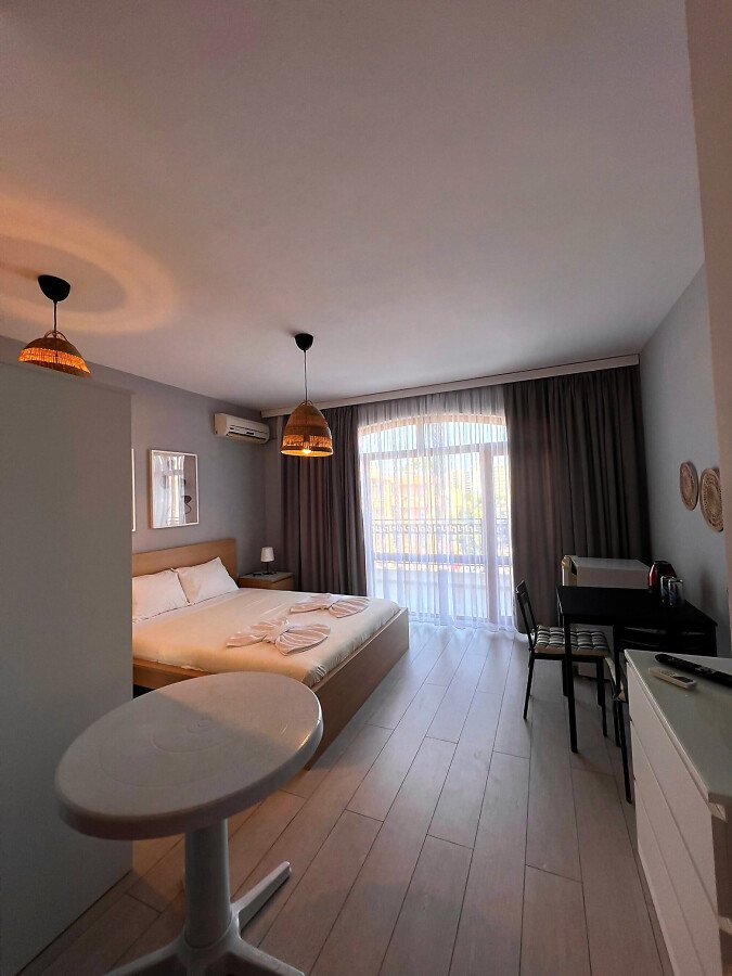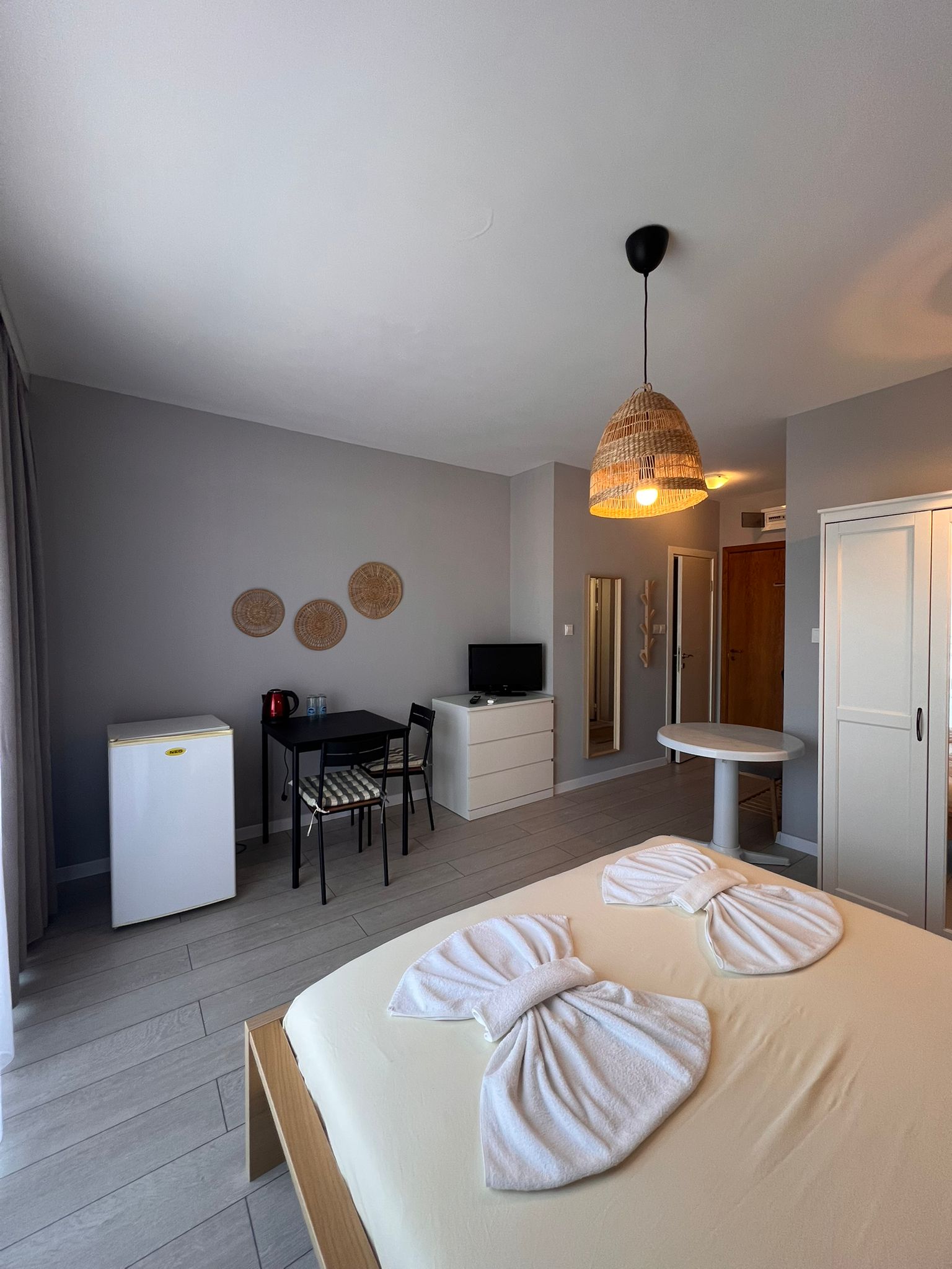 Намира се на пешеходно разстояние от плажа, магазини и автобусна спирка, което го прави отличен избор както за лично ползване, така и с инвестиционна цел.