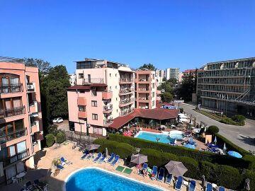 Жилището е с площ от 41 кв.м., обзаведено с модерни и качествени мебели. Разпределението е следното: входно антре, просторна всекидневна със зона за сън, балкон с гледка към басейна, килер, баня с тоалетна.