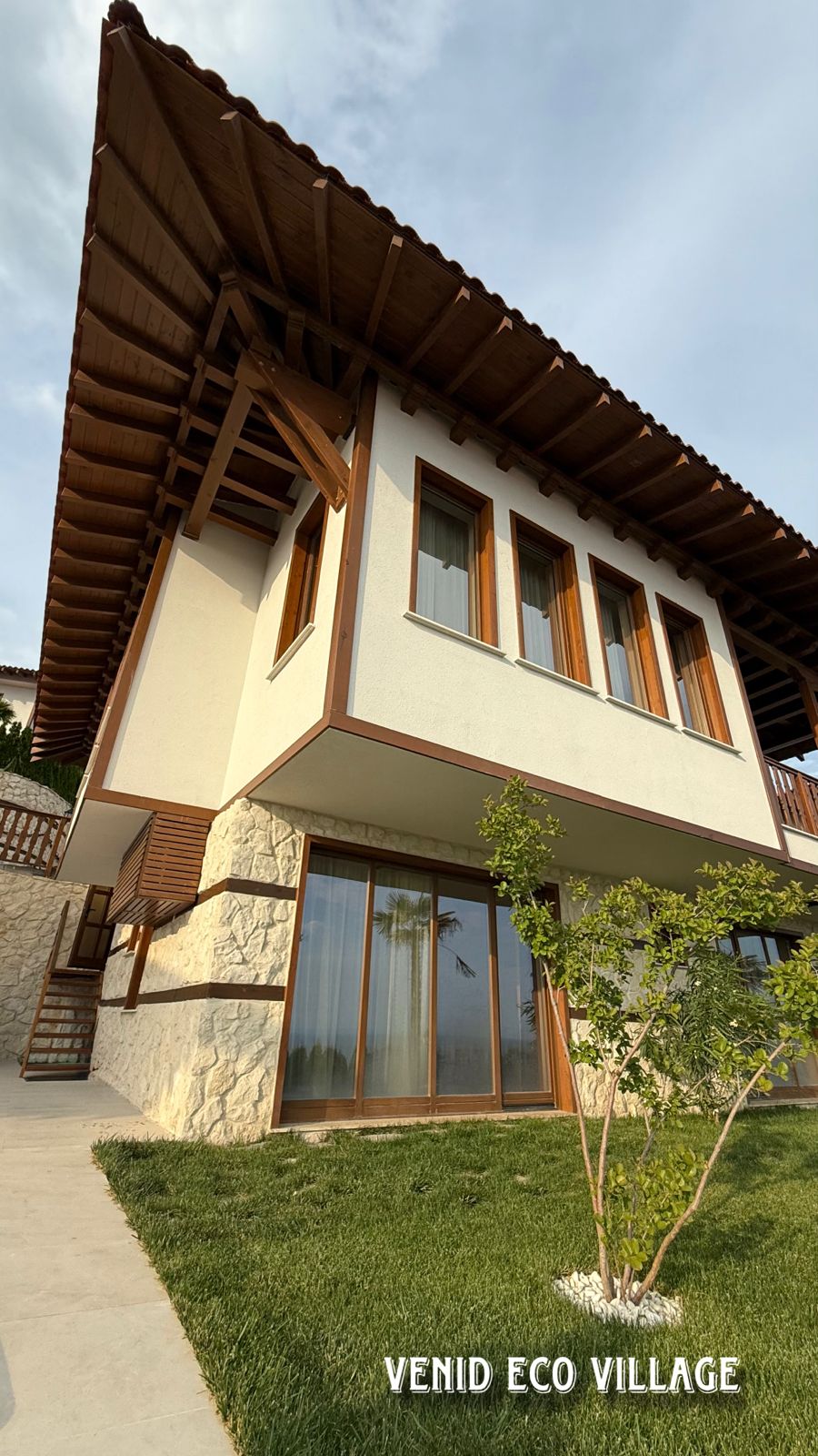 Предлагаме за продажба елегантна двуетажна къща с модерна архитектура, дизайнерски интериор и панорамен изглед към морето, разположена в престижния комплекс „Venid Eco Village“, Свети Влас.