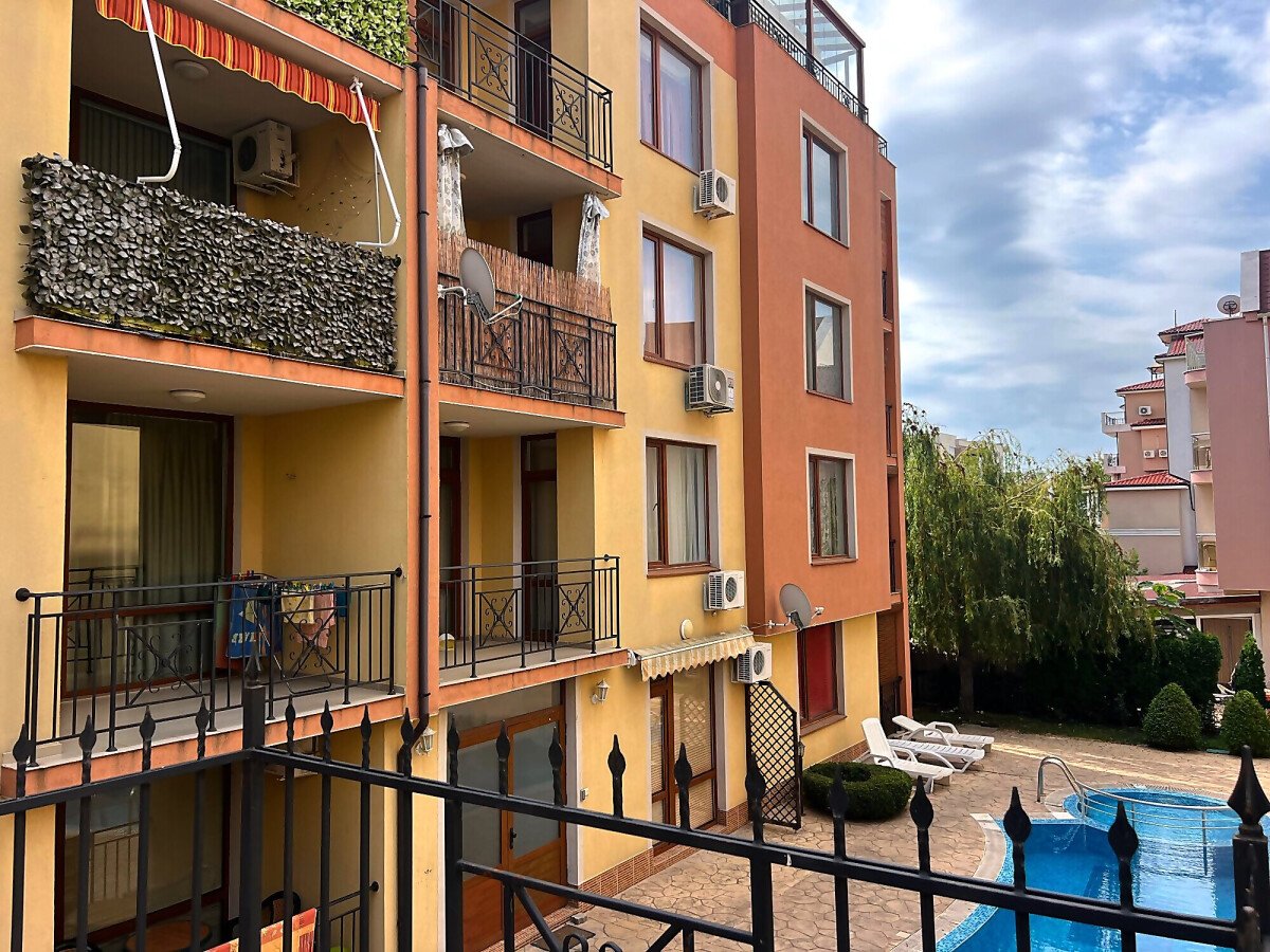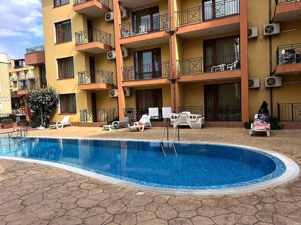 Предлагаме за продажба двустаен апартамент в комплекс близо до плажа в Свети Влас. Имотът е с площ 61,46 кв.м., разположен на втори етаж, с гледка към басейна. Продава се напълно обзаведен и оборудван, в отлично състояние и готов за нанасяне.