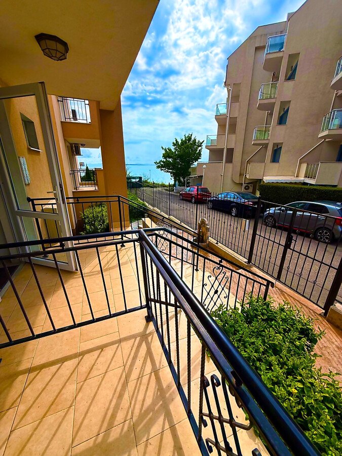 Студиото е напълно обзаведено и оборудвано, готово за живеене или отдаване под наем. Състои се от едно просторно помещение с обособени зони за спане и дневна, кухненски бокс и баня с душ кабина. Жилището разполага с тераса, от която може да се насладите на частична гледка към морето.