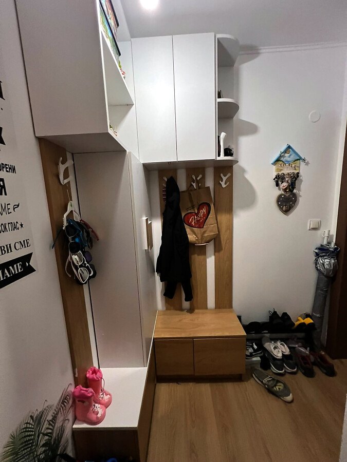 Апартаментът разполага с просторна всекидневна с кухненска част, отделна спалня, баня с тоалетна и тераса с гледка към вътрешния озеленен двор. Предлага се напълно обзаведен, с качествени мебели и оборудване, което го прави готов за нанасяне или отдаване под наем.