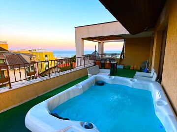 Предлагаме за продажба уникален пентхаус в луксозния комплекс „Порто Парадизо“, който се намира в елитния курорт Свети Влас. Само на 2 минути пешеходно разстояние е пясъчната плажна ивица и морето.
