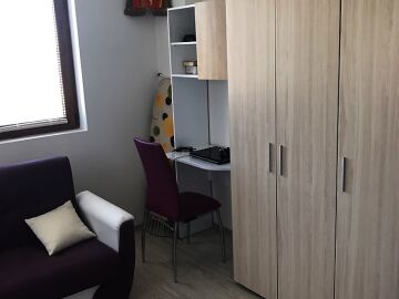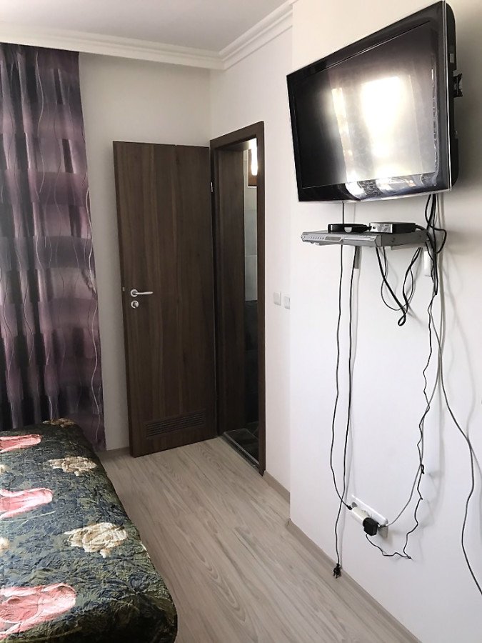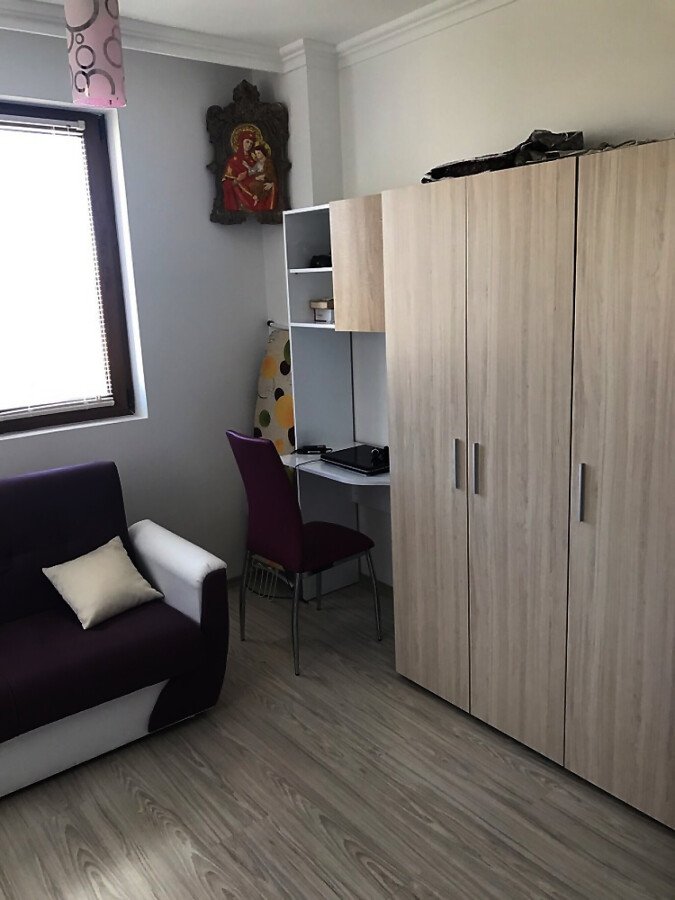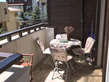 Апартаментът е с две спални, две бани, дневна с кухненски бокс и прекрасен балкон. Мебелиран е стилно, спрямо модерните тенденции.