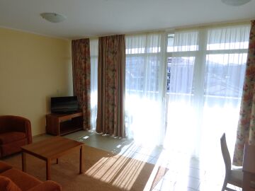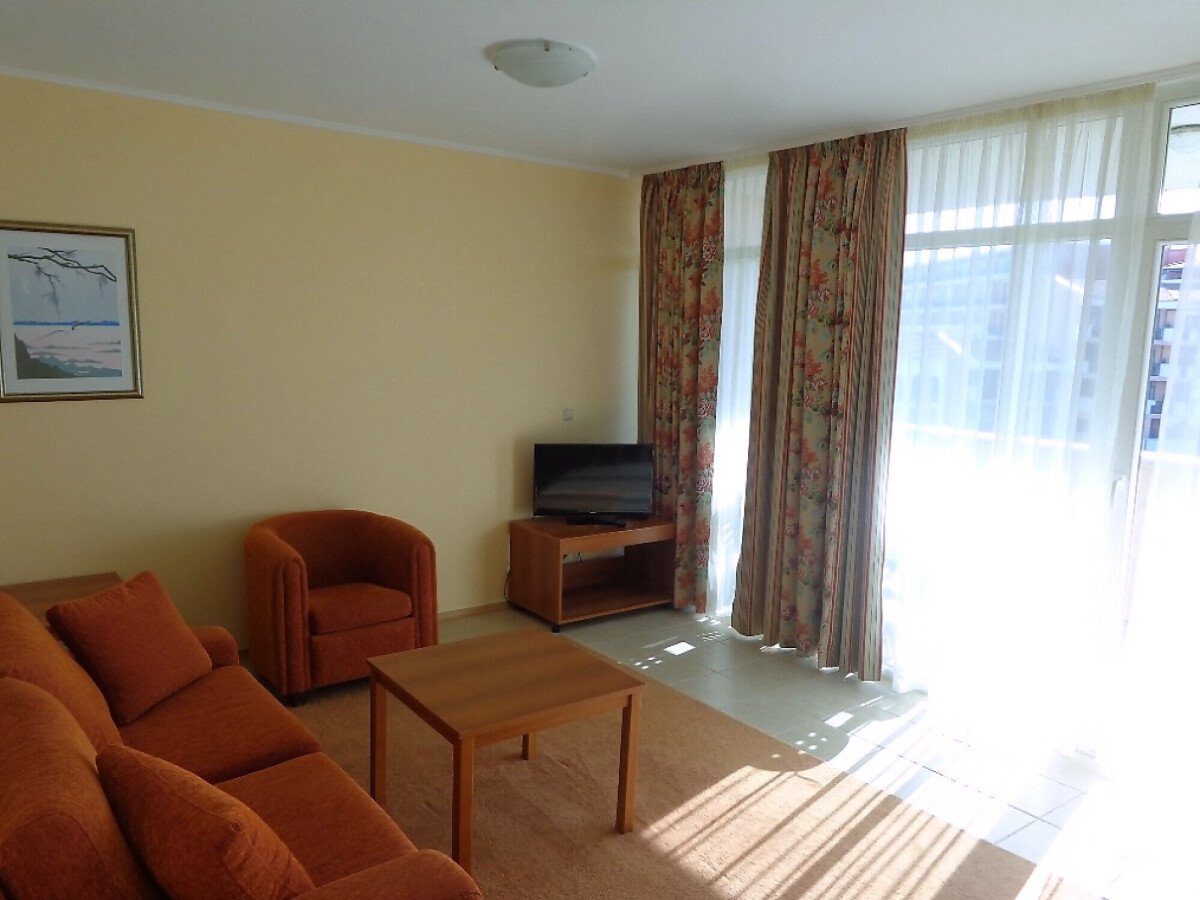 Предлагаме за продажба страхотен двустаен апартамент в 5-звездния комплекс „Сънсет Ризорт“, разположен на брега на морето в Поморие.