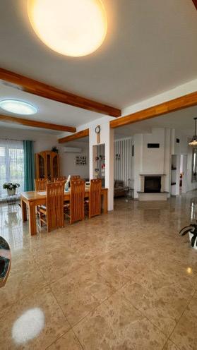 Имотът е ново строителство от 2020 г. с разгъната застроена площ от 197 кв.м, разпределена на два етажа. На първия етаж са разположени просторна всекидневна с кухня и камина, две спални, както и баня с тоалетна. Вторият етаж предлага още две спални, баня и тоалетна.