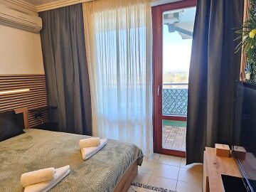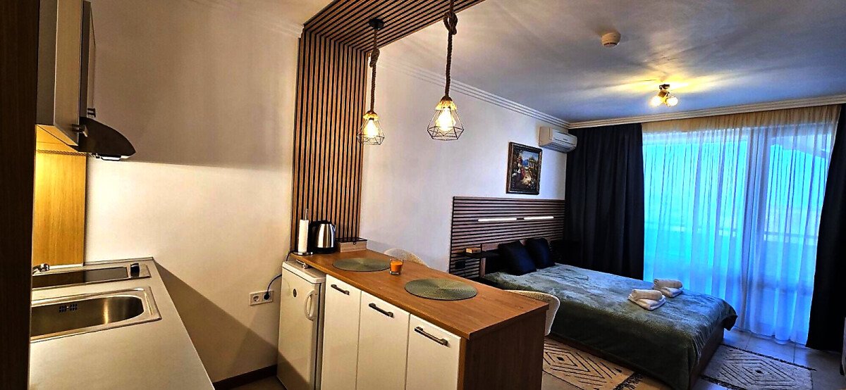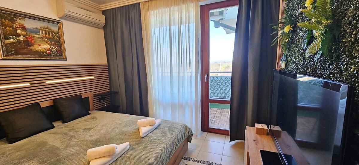 Предлагаме под наем просторно и комфортно студио, разположено в престижния петзвезден комплекс „Емералд Бийч Ризорт & Спа“ в Равда, на първа линия море и само на метри от плажа и центъра на курорта.