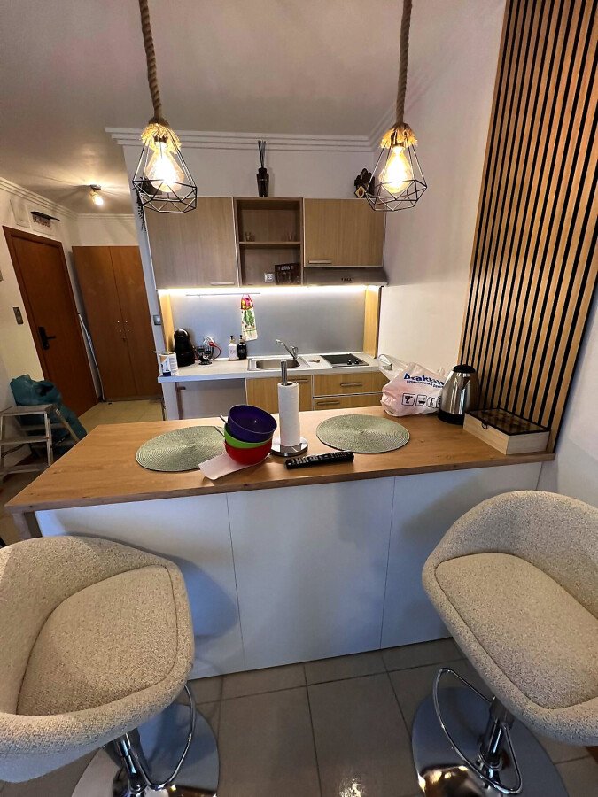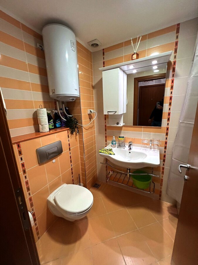 Студиото се намира на седми етаж в сграда с асансьор и е с площ 51.38 кв.м. Състои се от входно антре, светла всекидневна с обособена спалня, кухненски бокс, баня с тоалетна и вана, както и балкон. Имотът се отдава напълно обзаведен и оборудван.