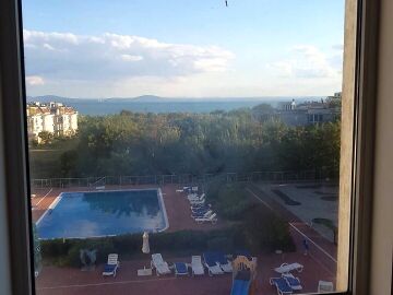 Предлагаме апартамент с прекрасна морска панорама в комплекс "Сарафово Резидънс", продава се напълно обзаведен с хубави качествени мебели.