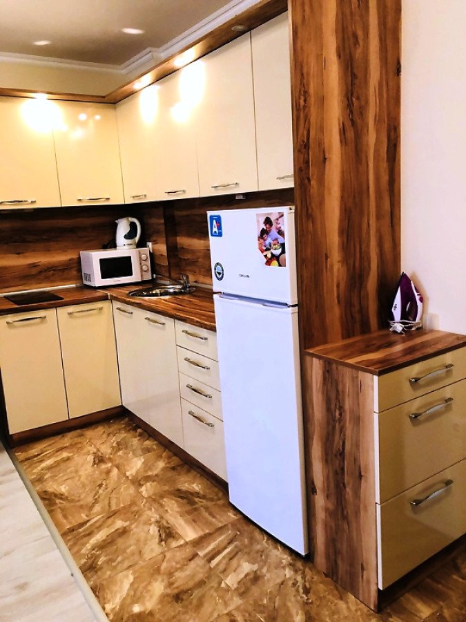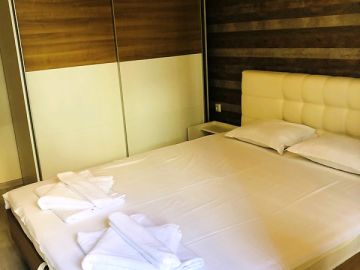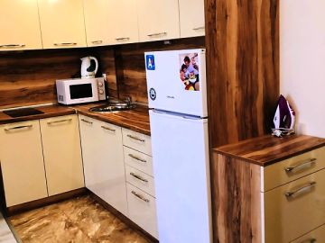 Апартаментът е стилен и обзаведен с вкус. Състои се от дневна с кухня, изработена по поръчка, спалня, баня с тоалетна и тераса.
