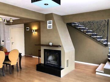 Къщата е луксозно обзаведена, има слънчеви панели и прекрасна камина.