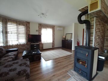Отоплението се осигурява от камина с радиатори, има инсталирани и климатици.