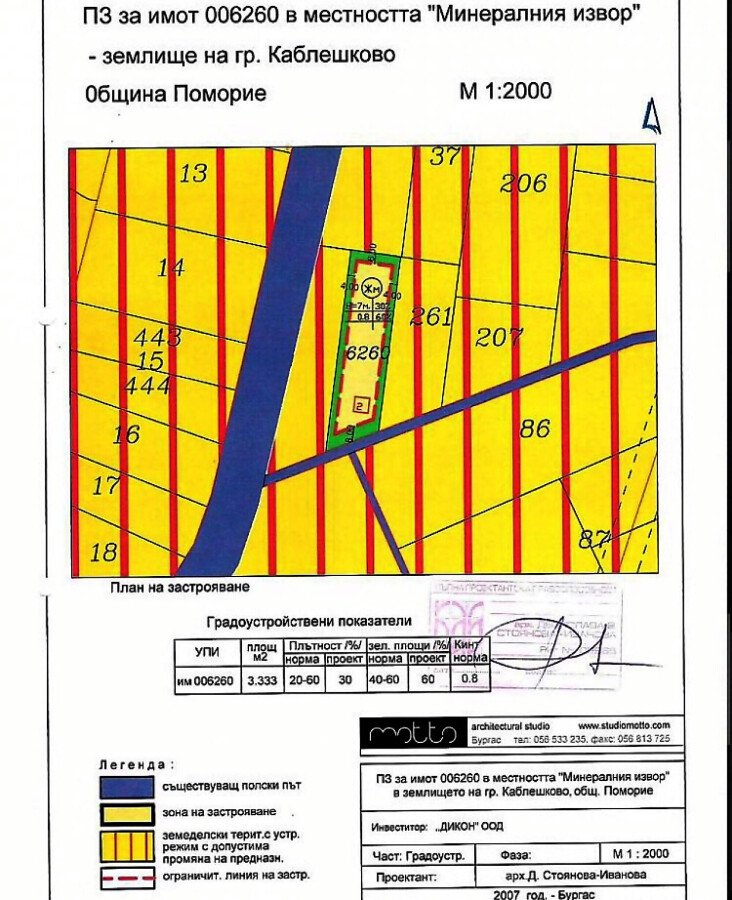 Площта на парцела е 3300 кв.м, близо до асфалтов път.