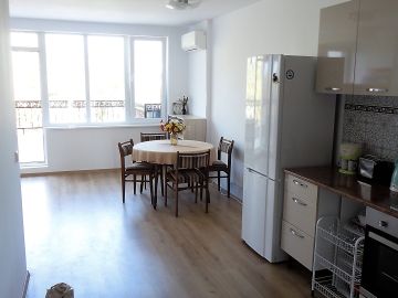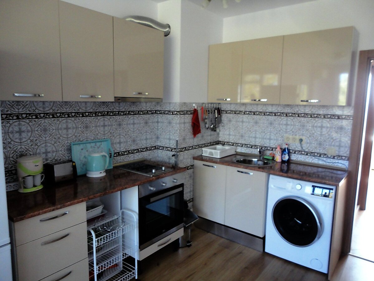 Оборудвано е с климатик, хладилник, пералня, готварска печка с фурна.