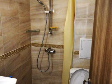 Апартаментът е разположен на шестия етаж и се състои от коридор, хол с оборудван кухненски бокс, спалня, две тераси – едната със северно, а другата с южно изложение, баня с тоалетна.