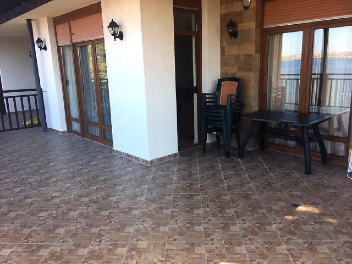 Разпределение: дневна с кухненски бокс, две спални, баня с тоалетна и невероятна огромна тераса с морски изглед.