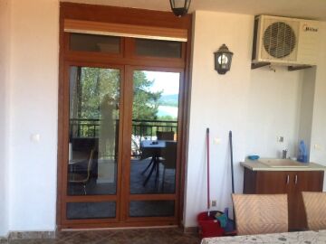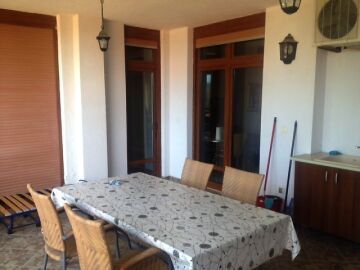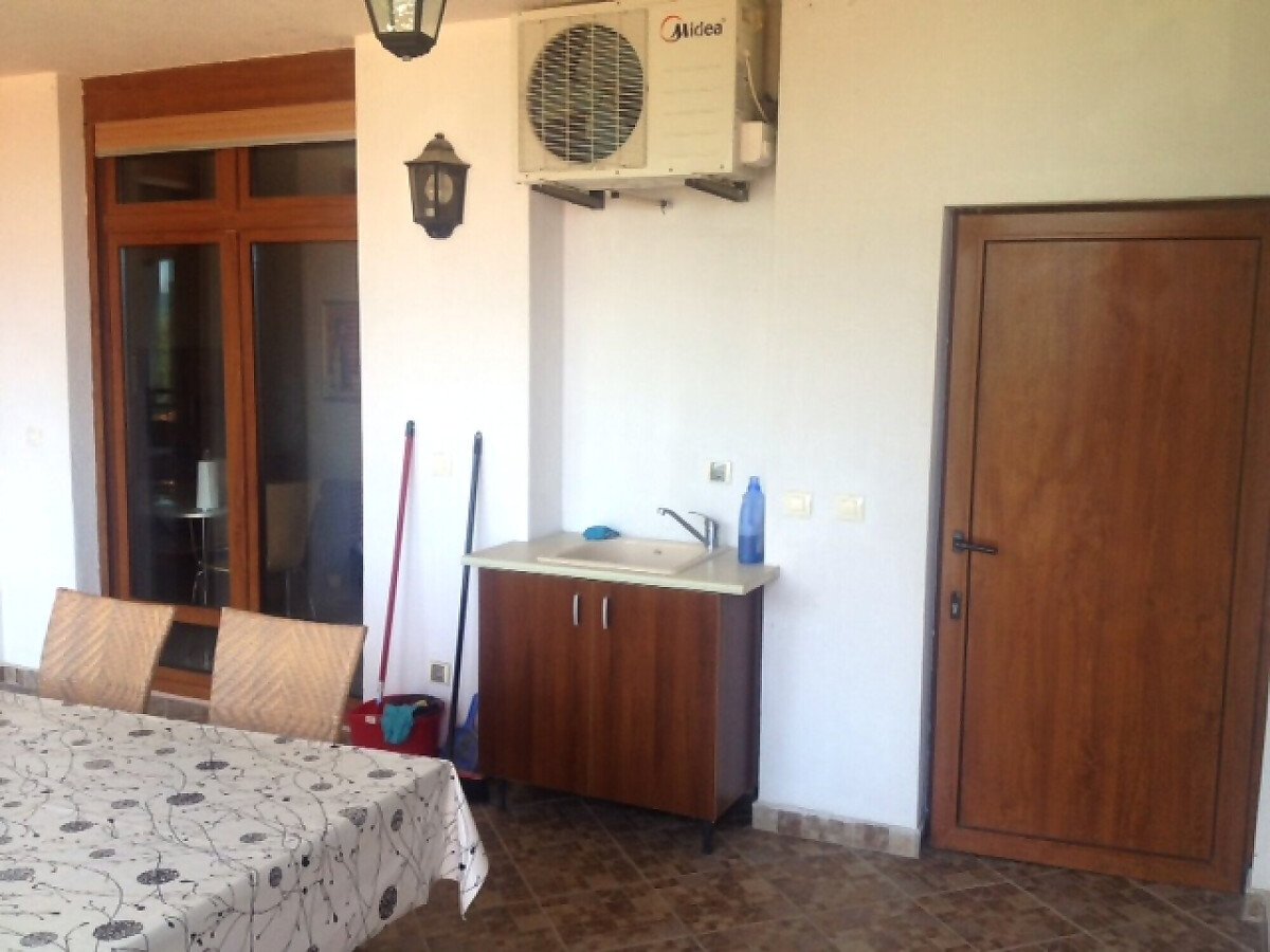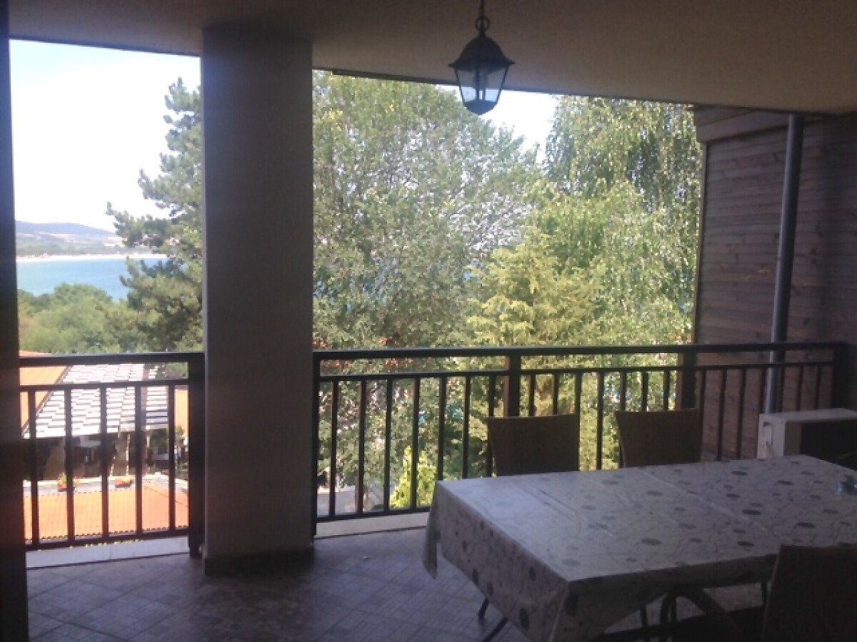 Апартаментът се намира на трети жилищен етаж и предлага красива гледка към морето.