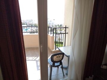Жилището е просторно – площта му е 90 кв.м и е напълно обзаведено. Състои се от две спални помещения, дневна с кухненски бокс, баня с тоалетна и разкошна голяма тераса с гледка към морето.