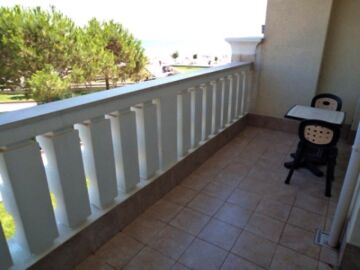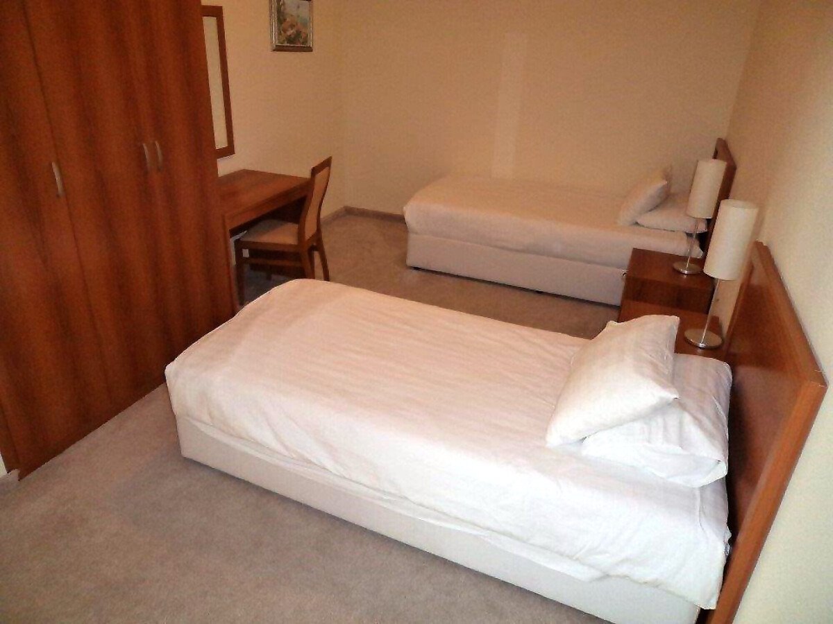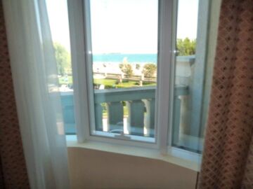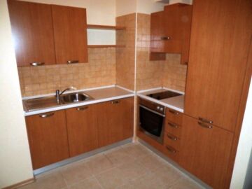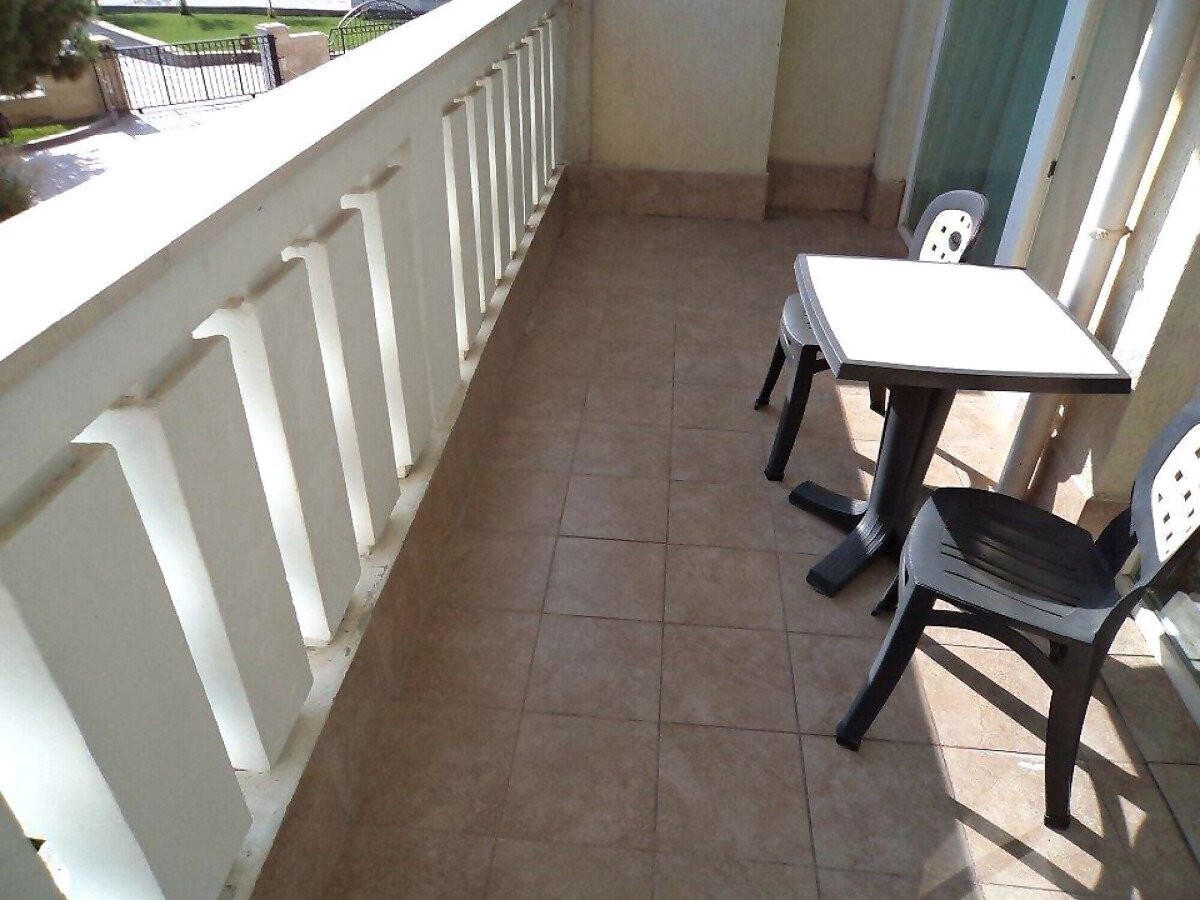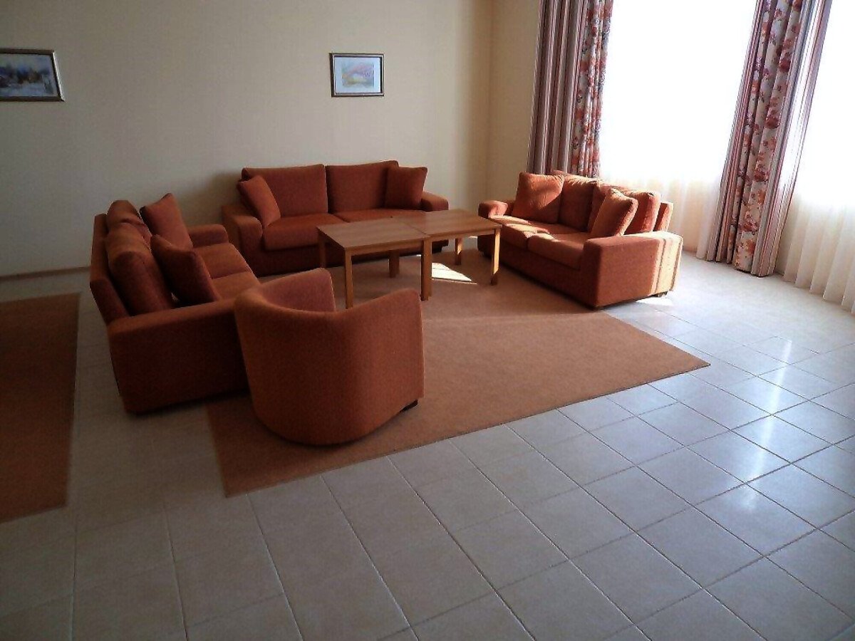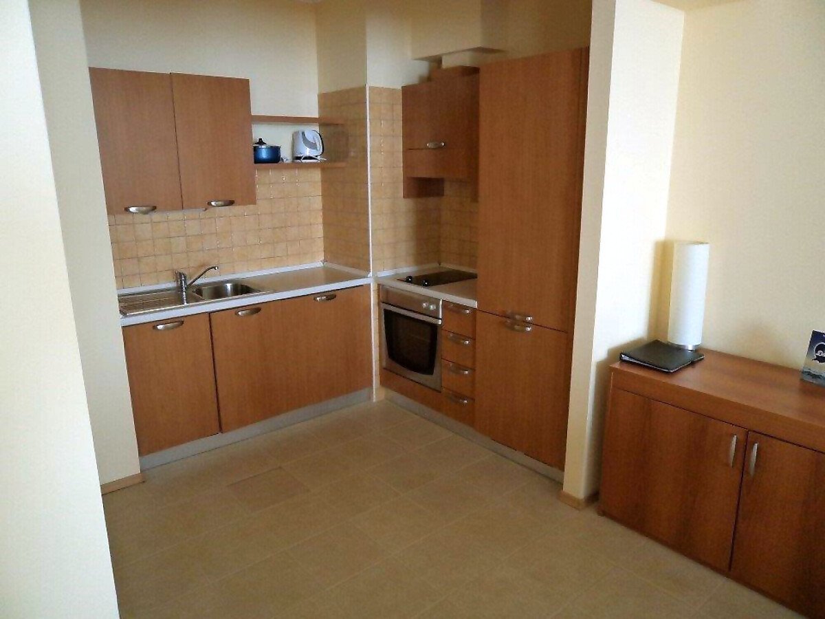 Апартаментът е много голям и просторен – състои се от огромна дневна с оборудван кухненски бокс, трапезария и масивни дивани и фотьойли за пълноценна почивка, две прекрасни спални, баня с вана и тоалетна и разкошна тераса с гледка към морето и територията на комплекса.