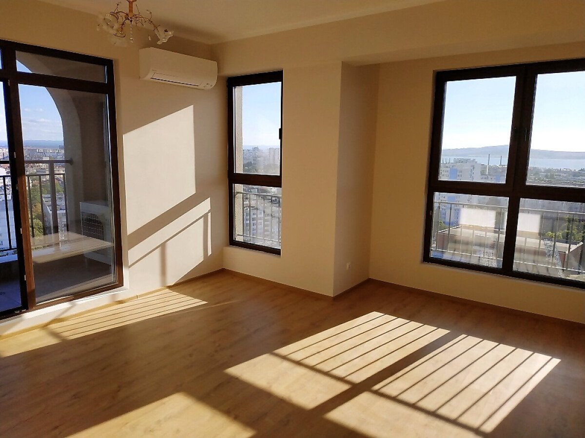 Апартаментът се намира на 18-ия етаж, от прозорците и терасата можете да видите морето, стадиона, Бургаския залив, центъра на града и езерото Вая.