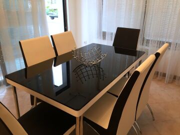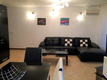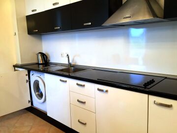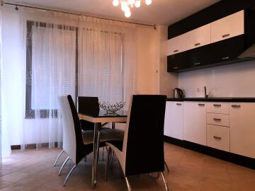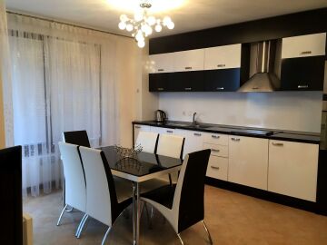Апартаментът е със стилно обзавеждане и качествени уреди.