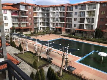 Жилището е с обща площ 58 кв.м. Разпределението е следното: антре, дневна с кухненски бокс, спалня, баня с тоалетна и тераса с прекрасен изглед към басейна на комплекса.