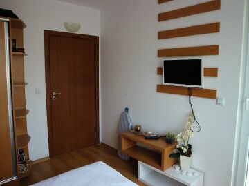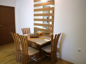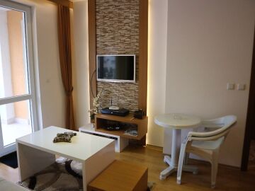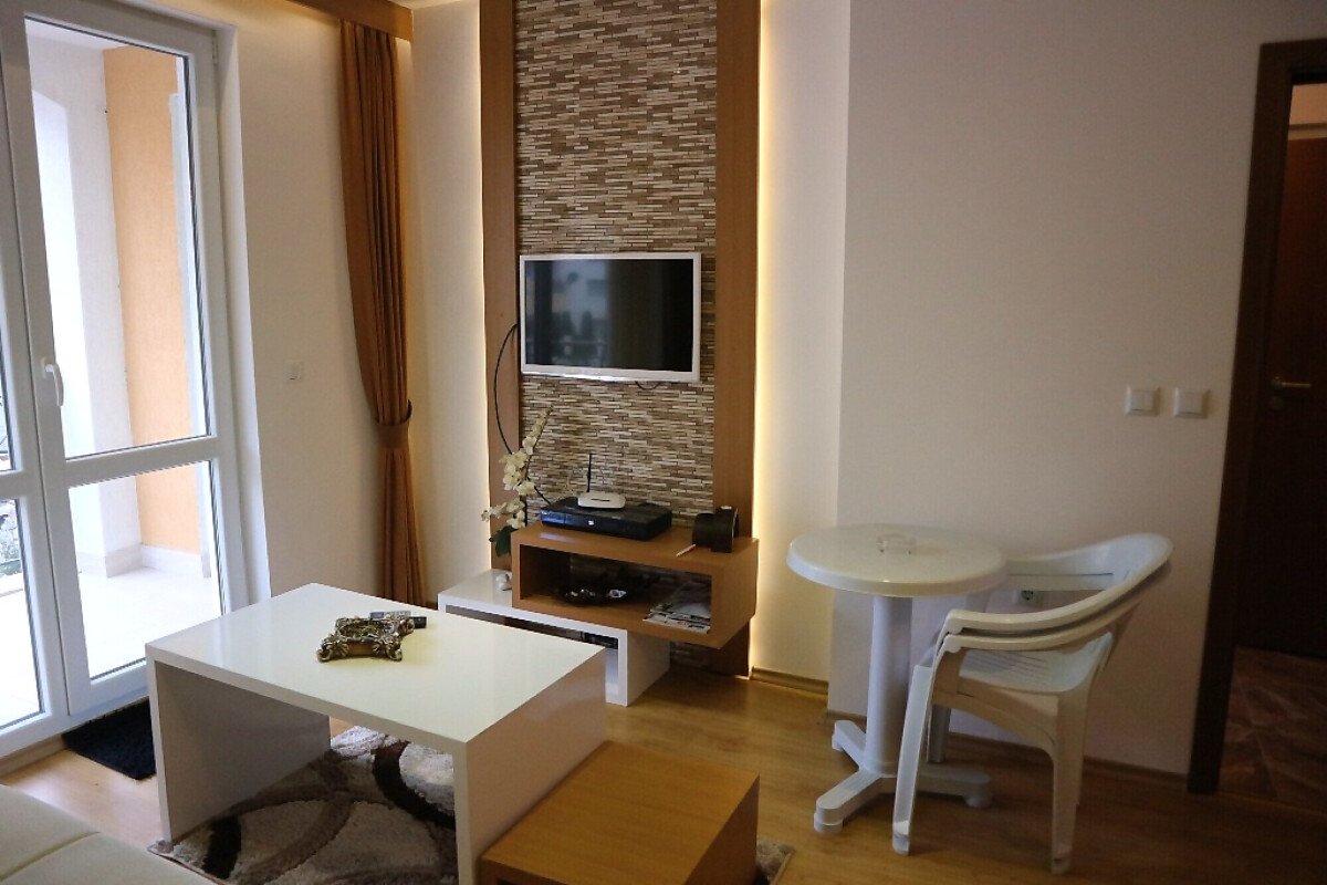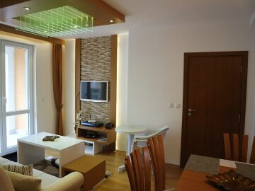 Апартаментът е изключително стилен и обзаведен с качествени мебели и електроуреди - състои се от антре, дневна с кухненски бокс, спалня, баня с тоалетна и тераса. Дизайнът на жилището е наистина впечатляващ - всичко е внимателно подбрано и перфектно съчетано.