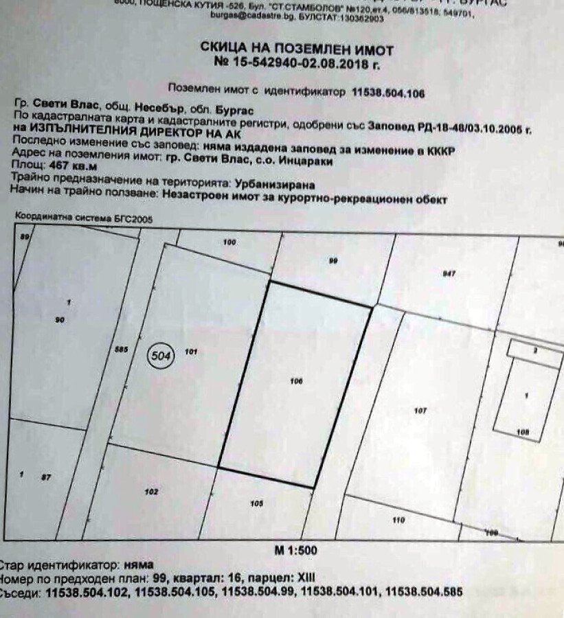 Парцелът е подходящ за построяване на жилищен комплекс или жилищна сграда.